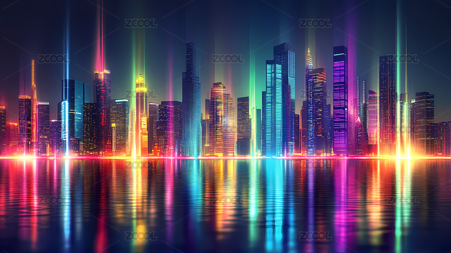 城市,都市,夜景,摩天大楼,建筑,灯光,倒影,水面,现代化,繁华