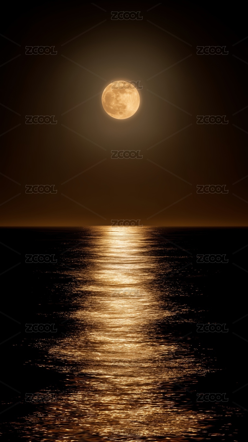 金黄月夜海面