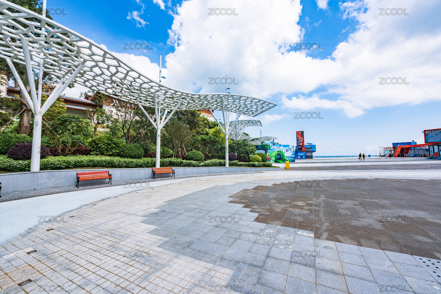 深圳,滨海文化公园,城市,建筑,砖地,广场,路,地面,树,白天