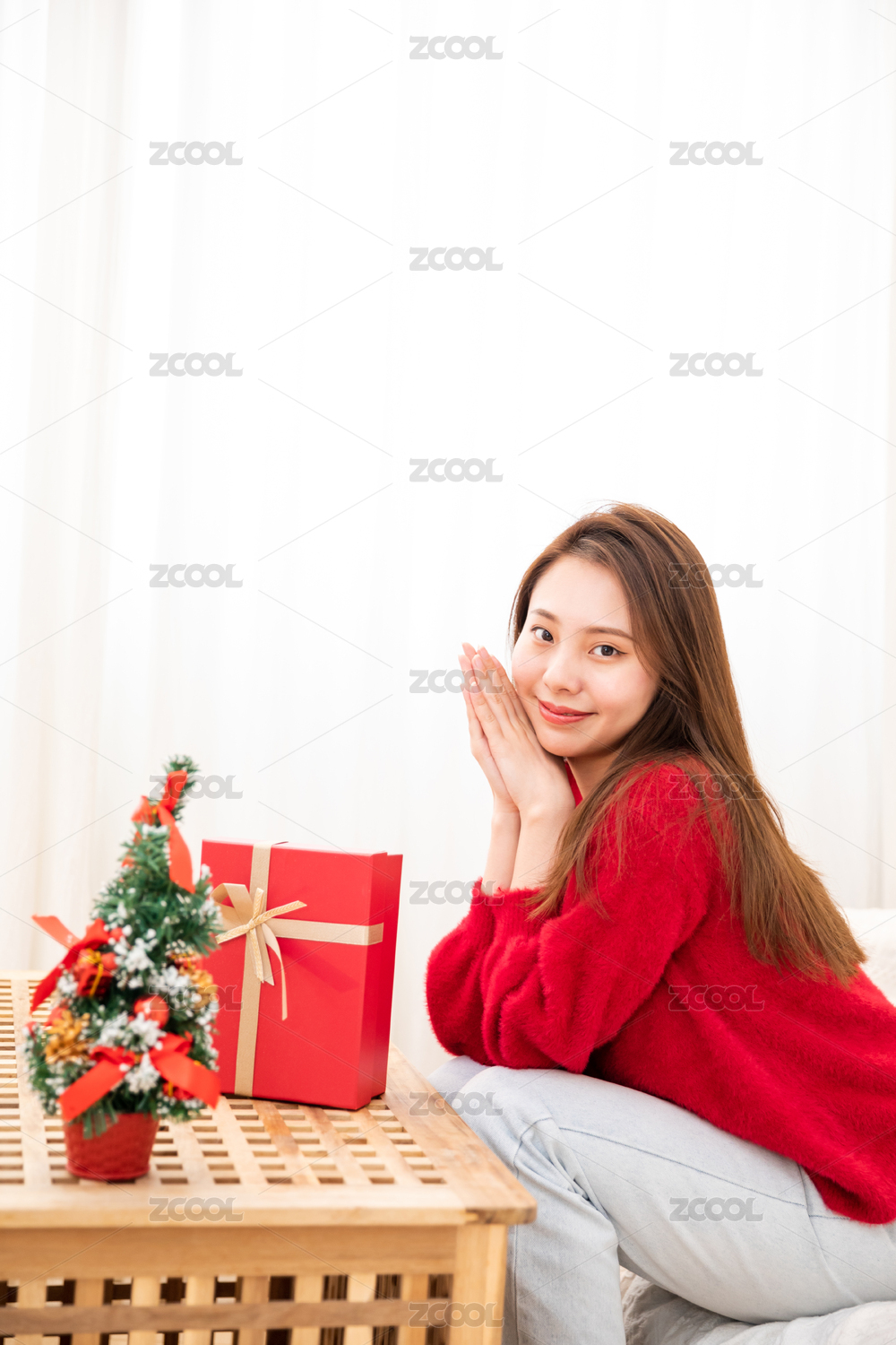 圣诞,竖构图,温馨,温暖,过节,节日,圣诞节,美女,圣诞树,礼物
