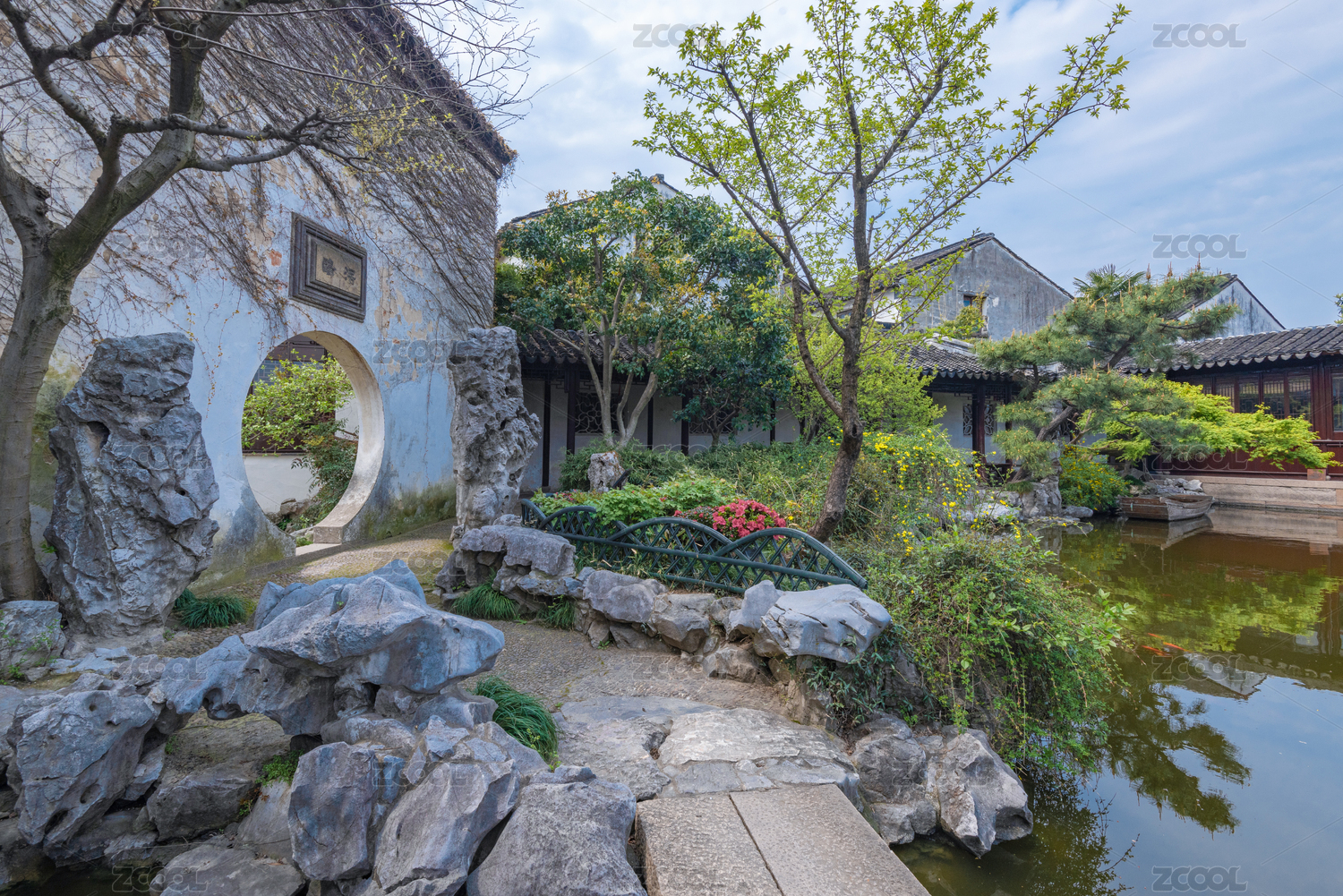 中国苏州同里古典园林亭台楼阁假山白天高清大图