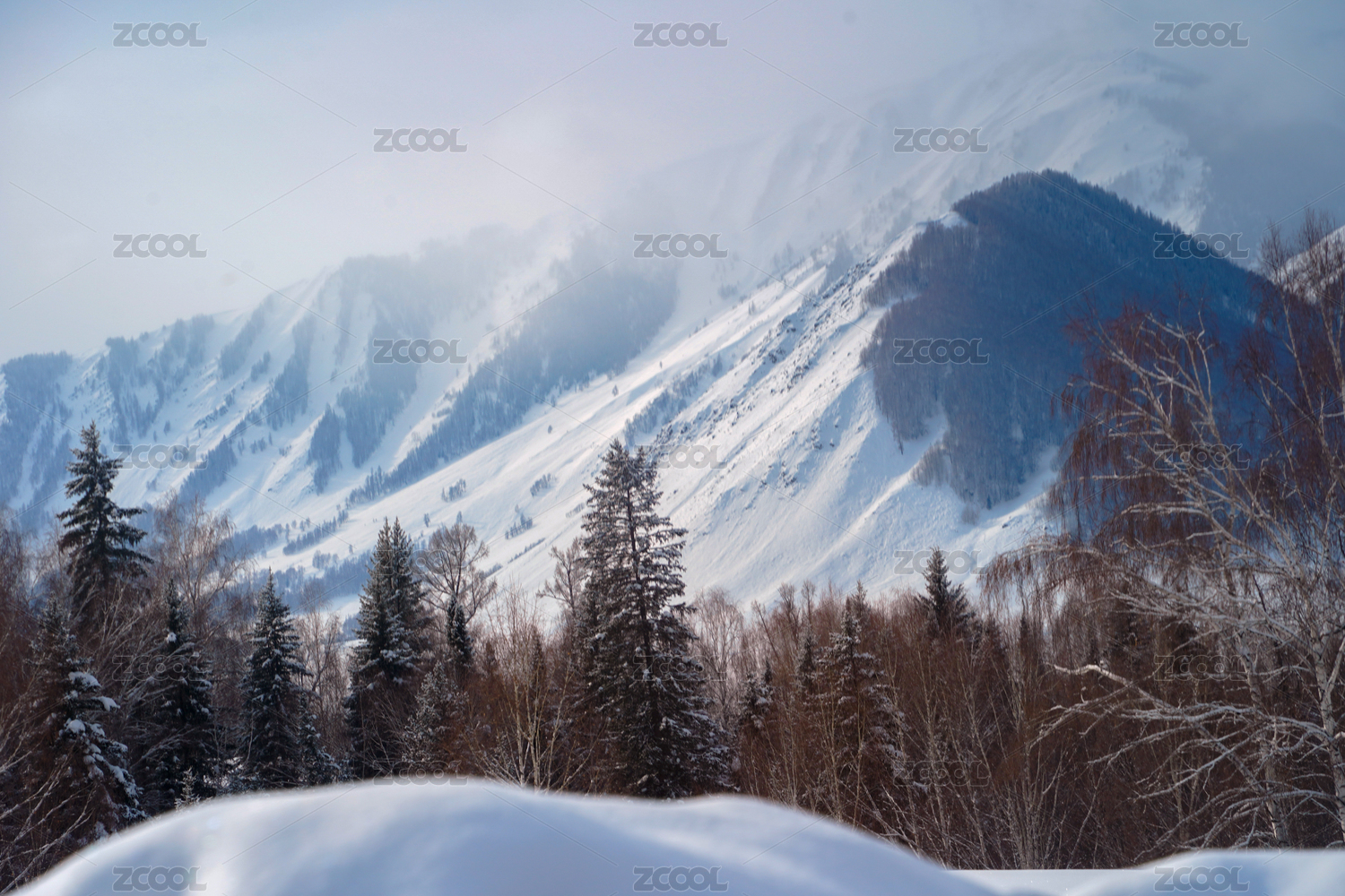 中国新疆阿勒泰喀纳斯禾木冬季雪山森林景观