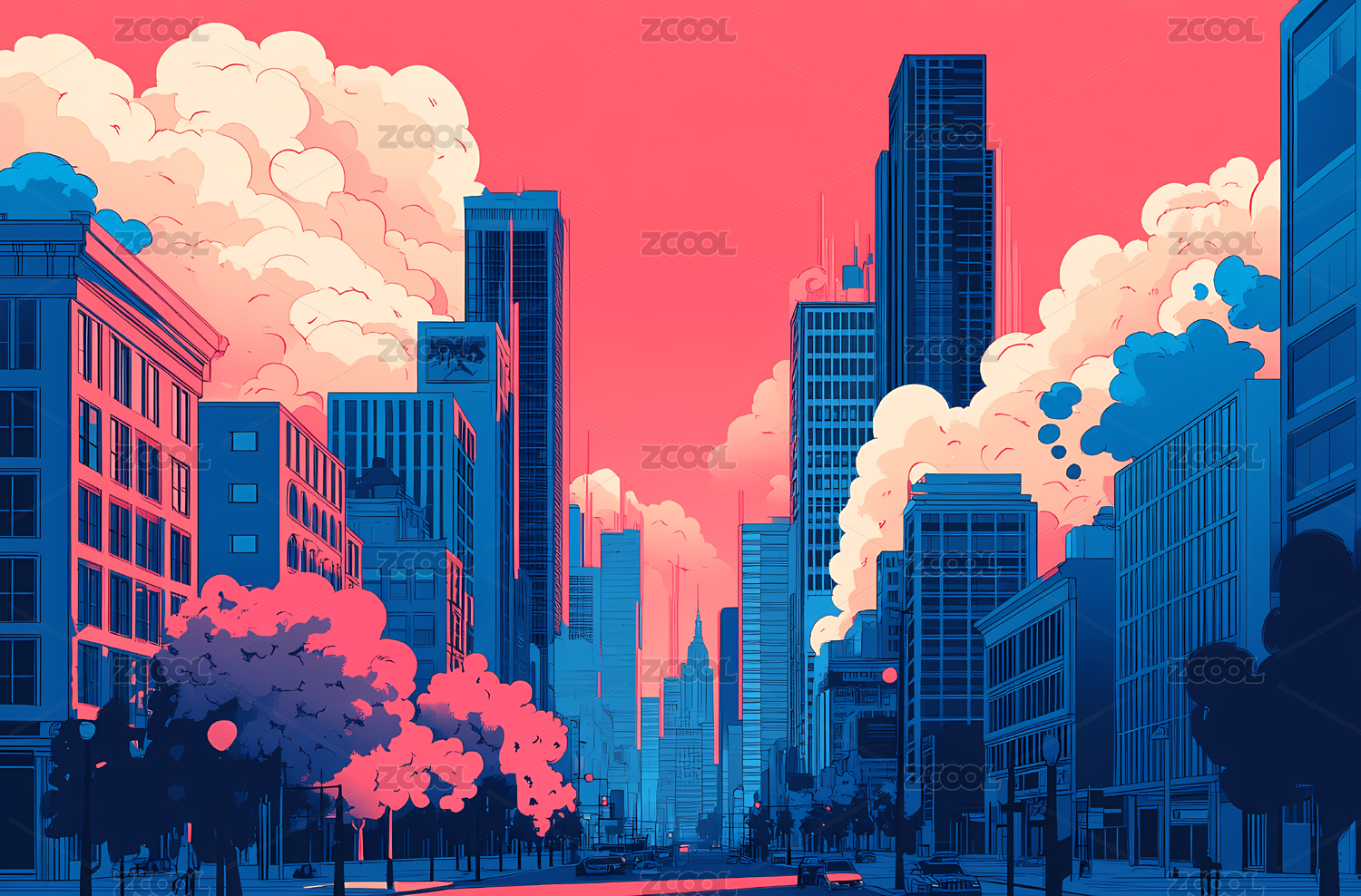 卡通风格的现代城市街景