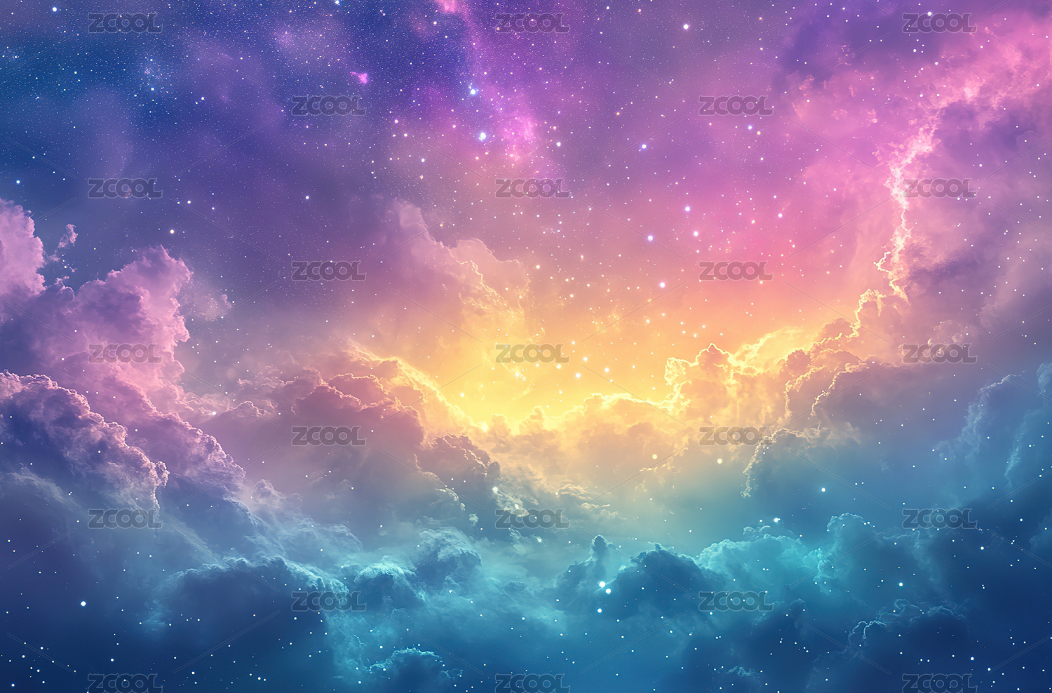 干净蓝天美丽白云抽象PPT海报主视觉背景