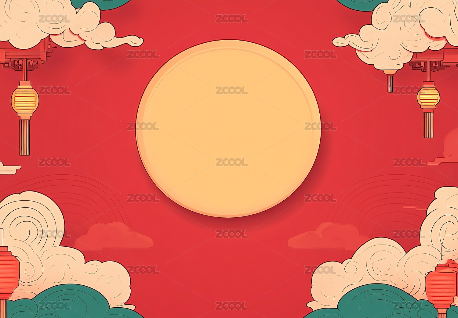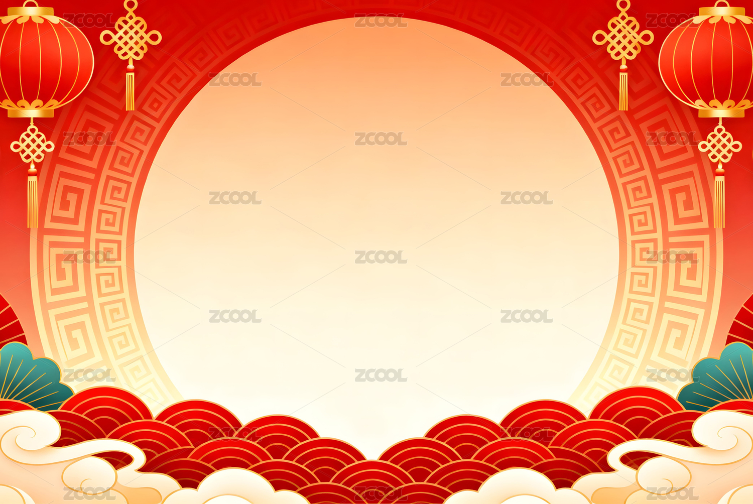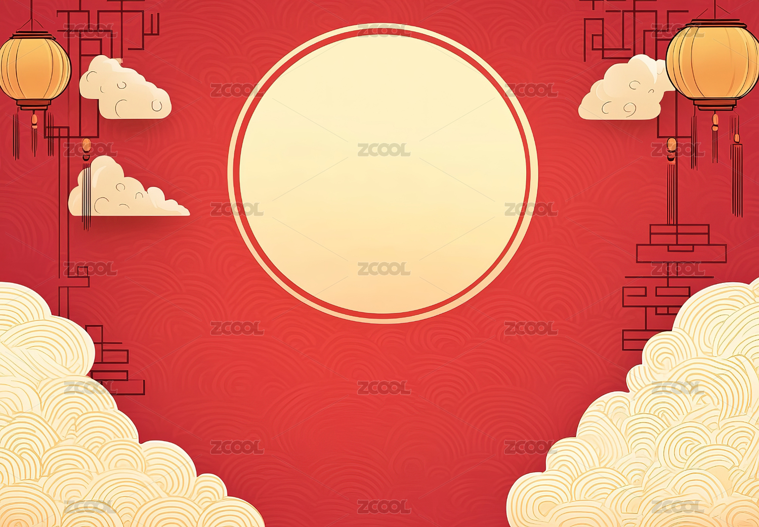 中国风节日云纹灯笼红色背景