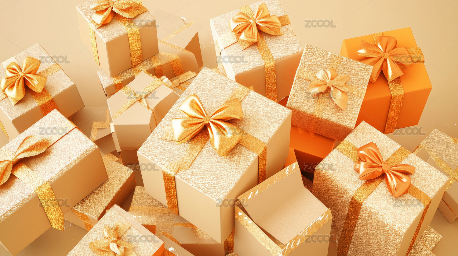 金色礼品盒堆叠场景高清渲染图