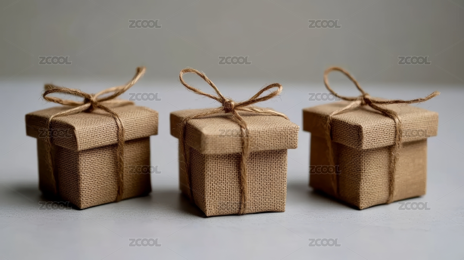 三个用麻绳捆绑的精美礼品盒