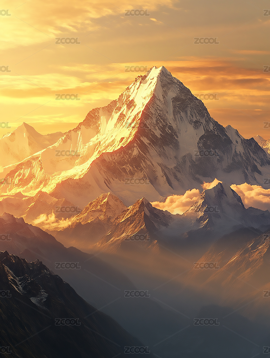 中国四川甘孜藏族自治州贡嘎山日照金山风光