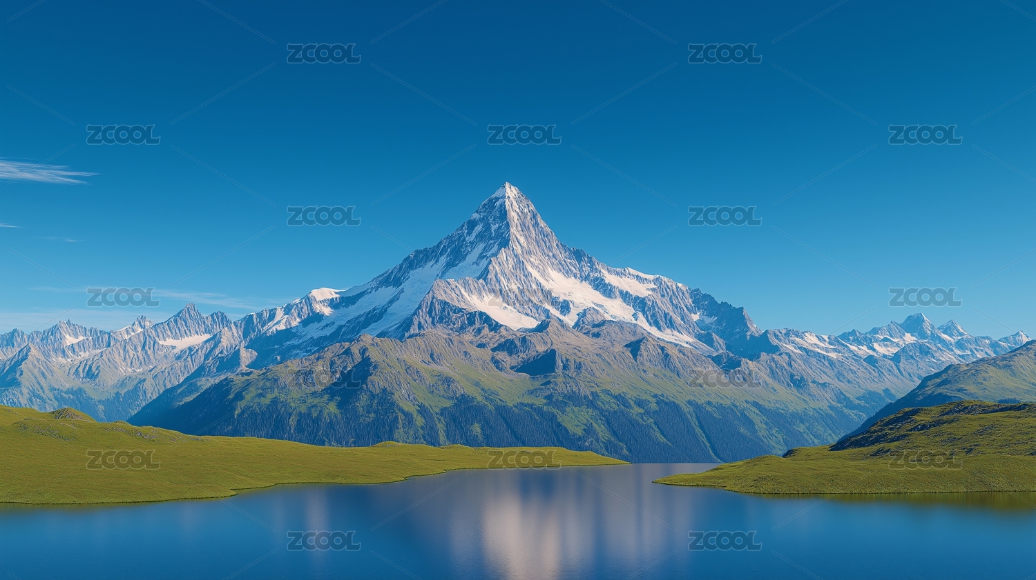 远望西欧瑞士阿尔卑斯山少女峰雪山