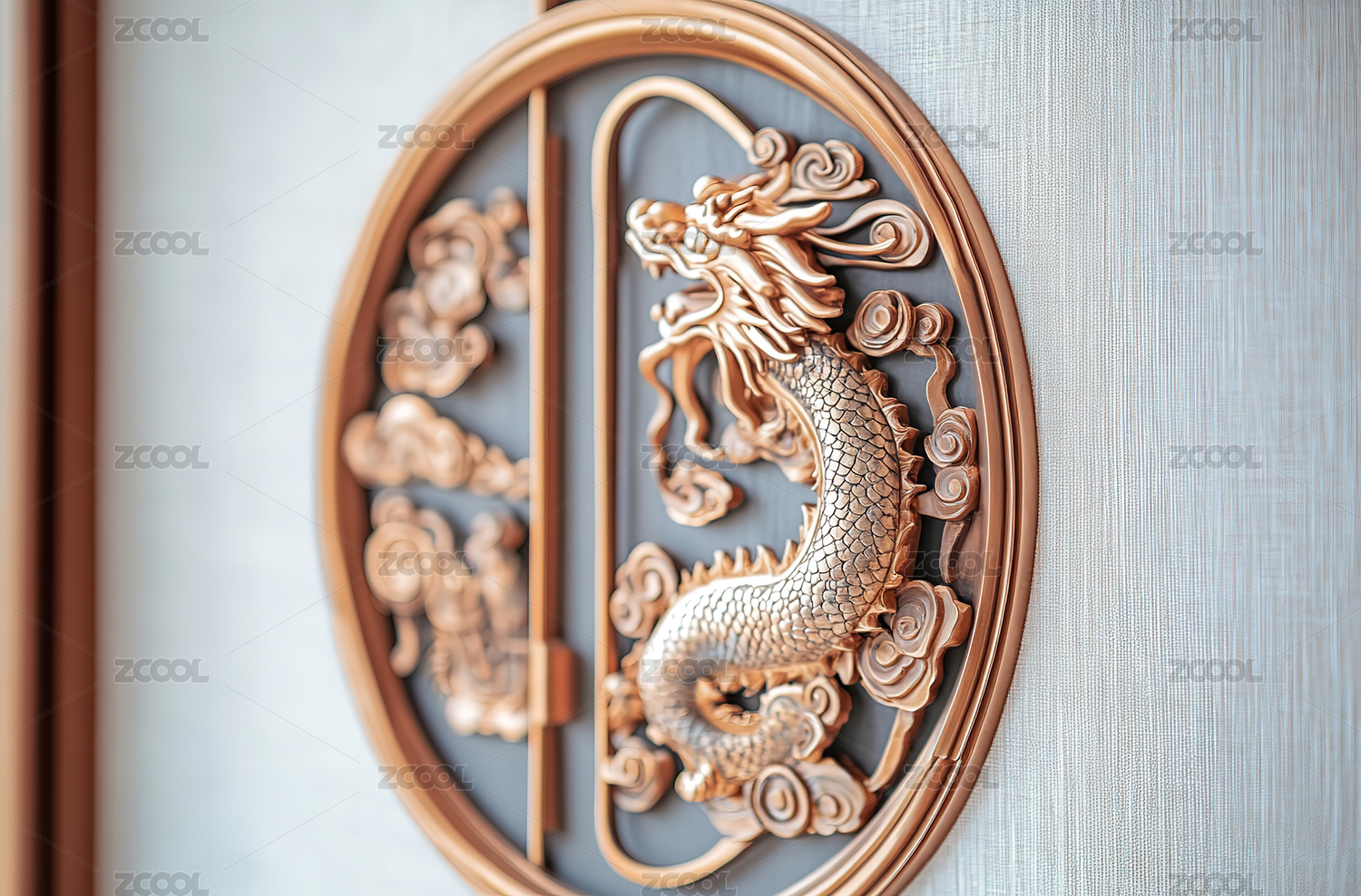 中华龙纹木雕壁画景观