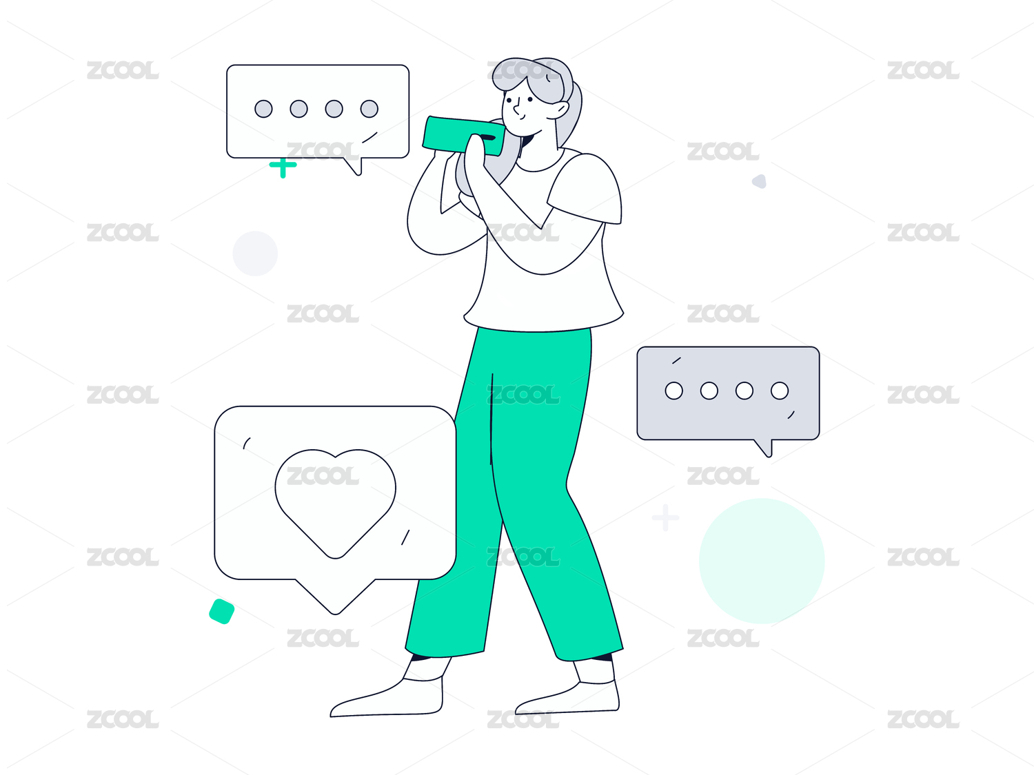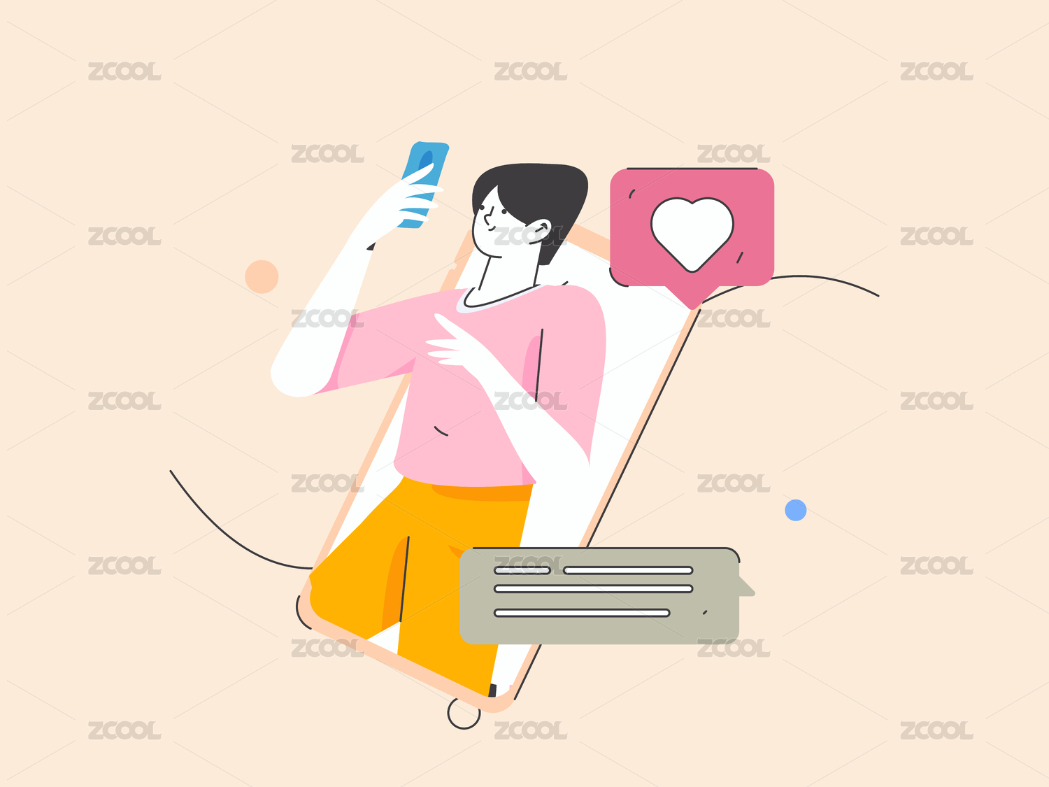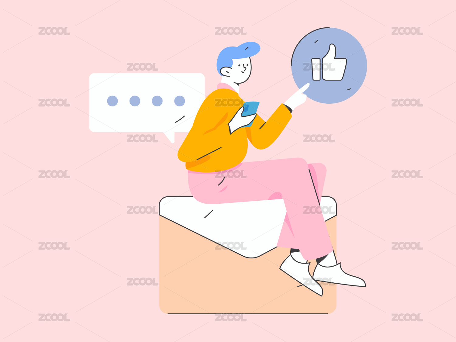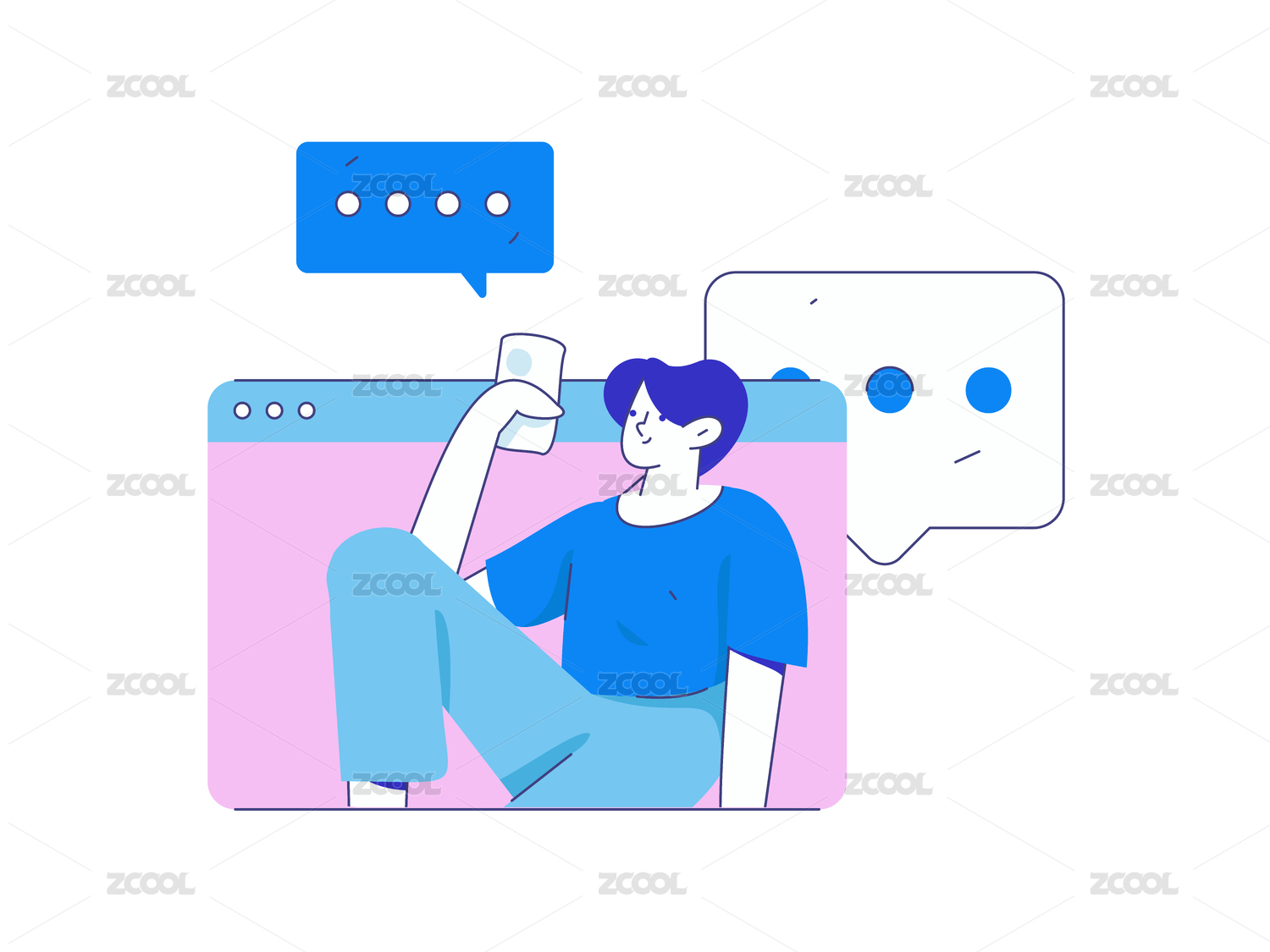 虚拟的人物社交沟通概念商业扁平矢量手绘插