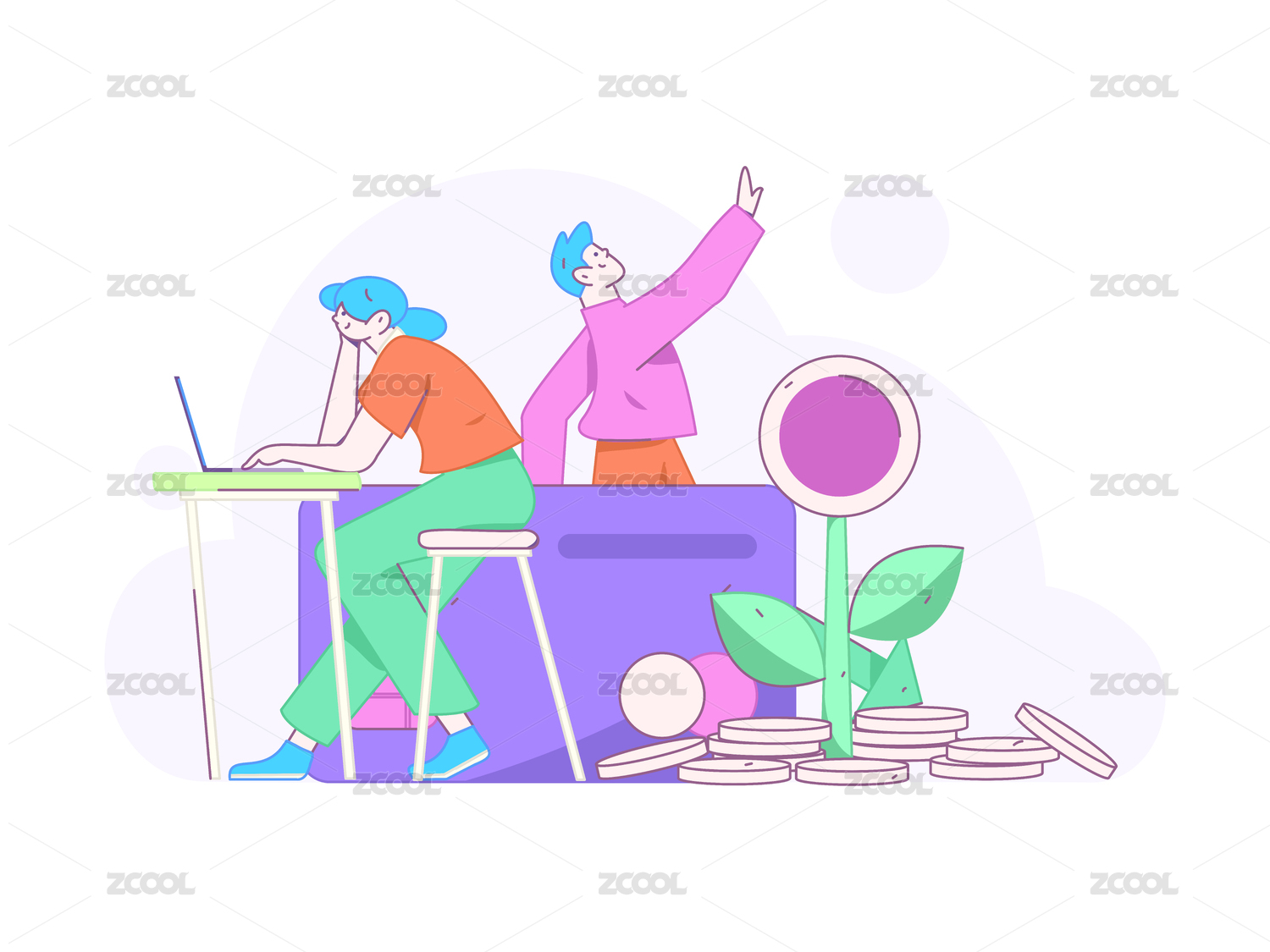 互联网金融理财投资扁平矢量概念运营手绘插