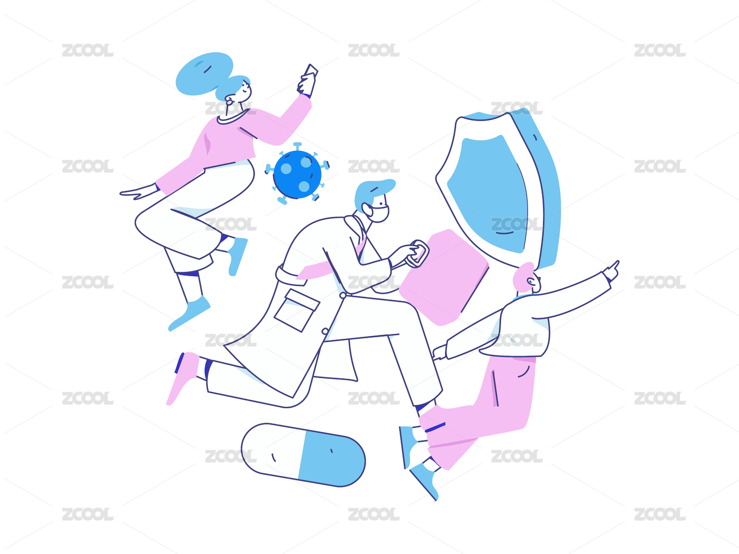 医疗人物抗疫扁平矢量概念运营手绘插画