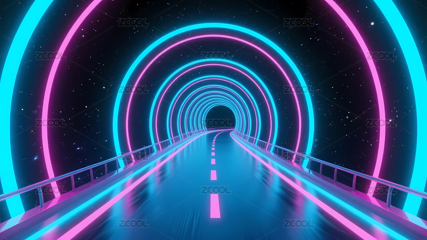 地下通道和霓虹灯光,赛博朋克科技感背景