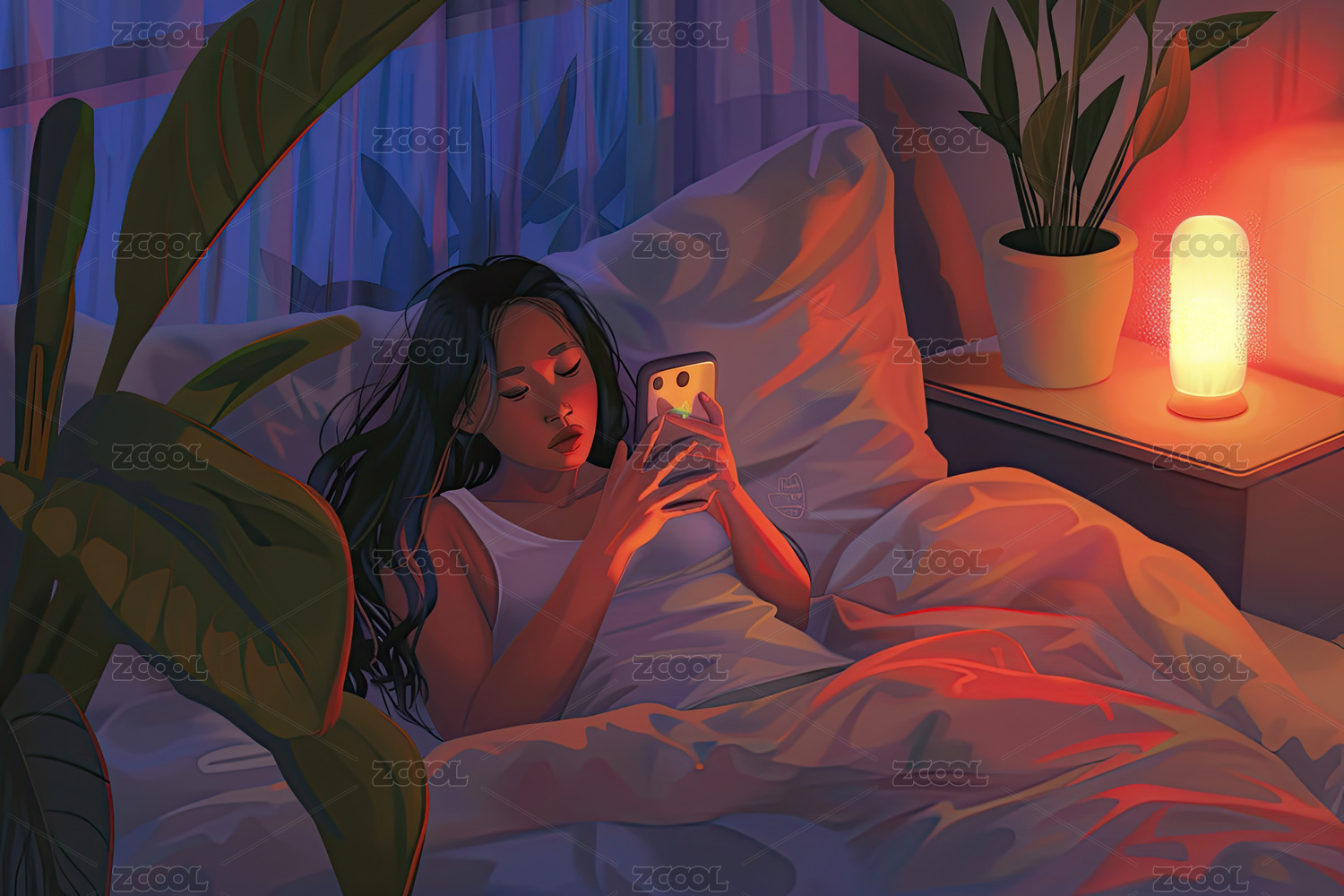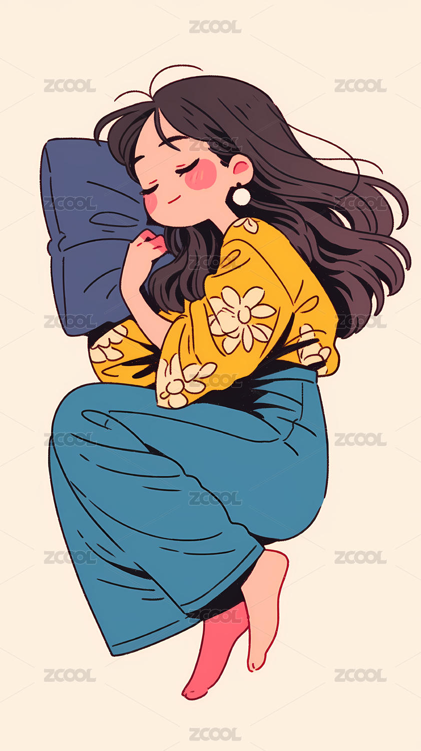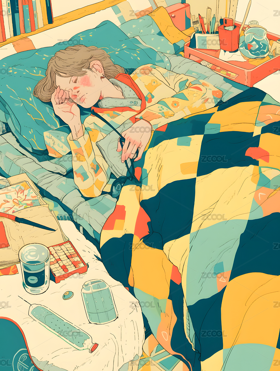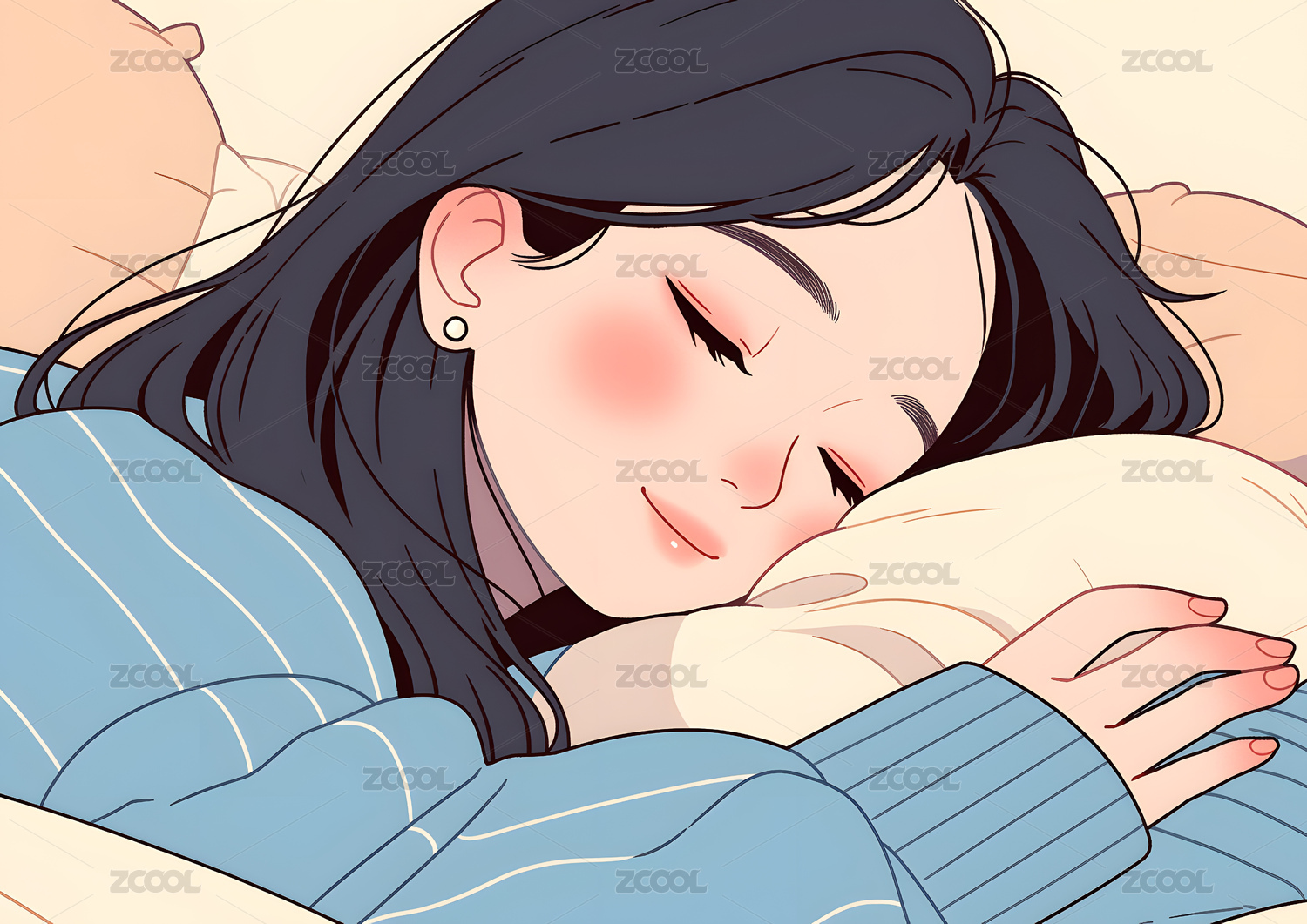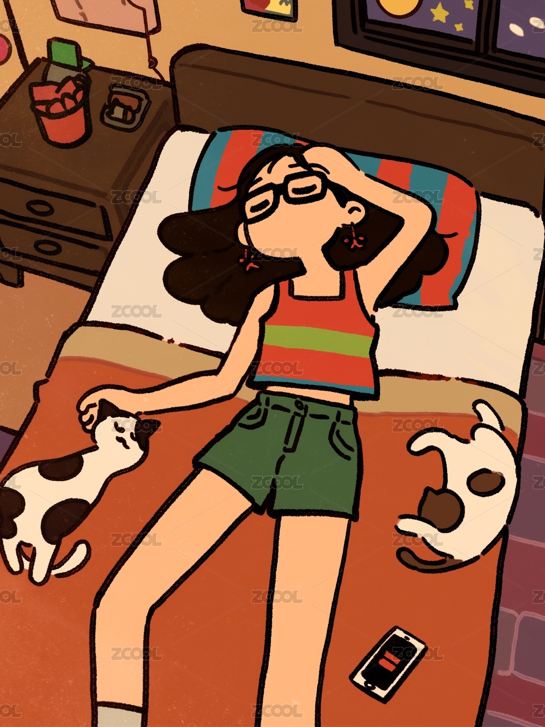 夏天女生睡觉/女生跟猫躺床上听着音乐做梦