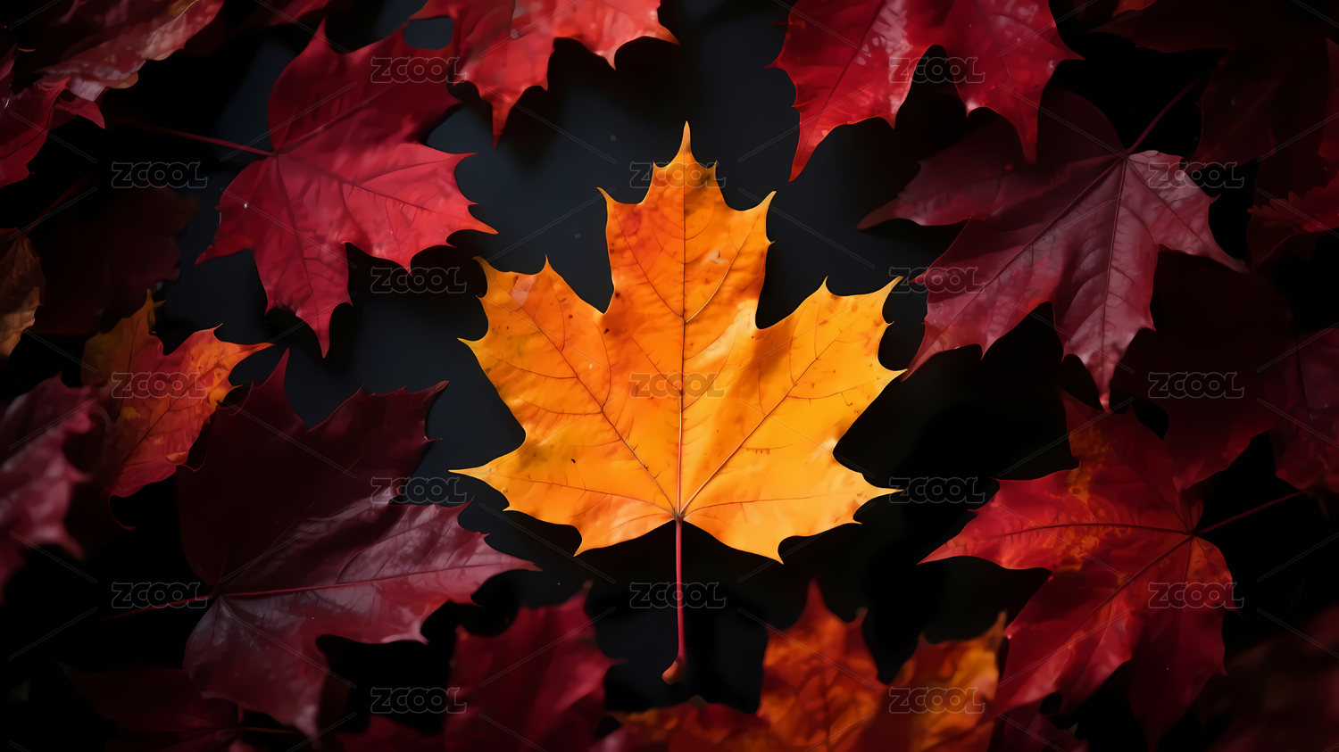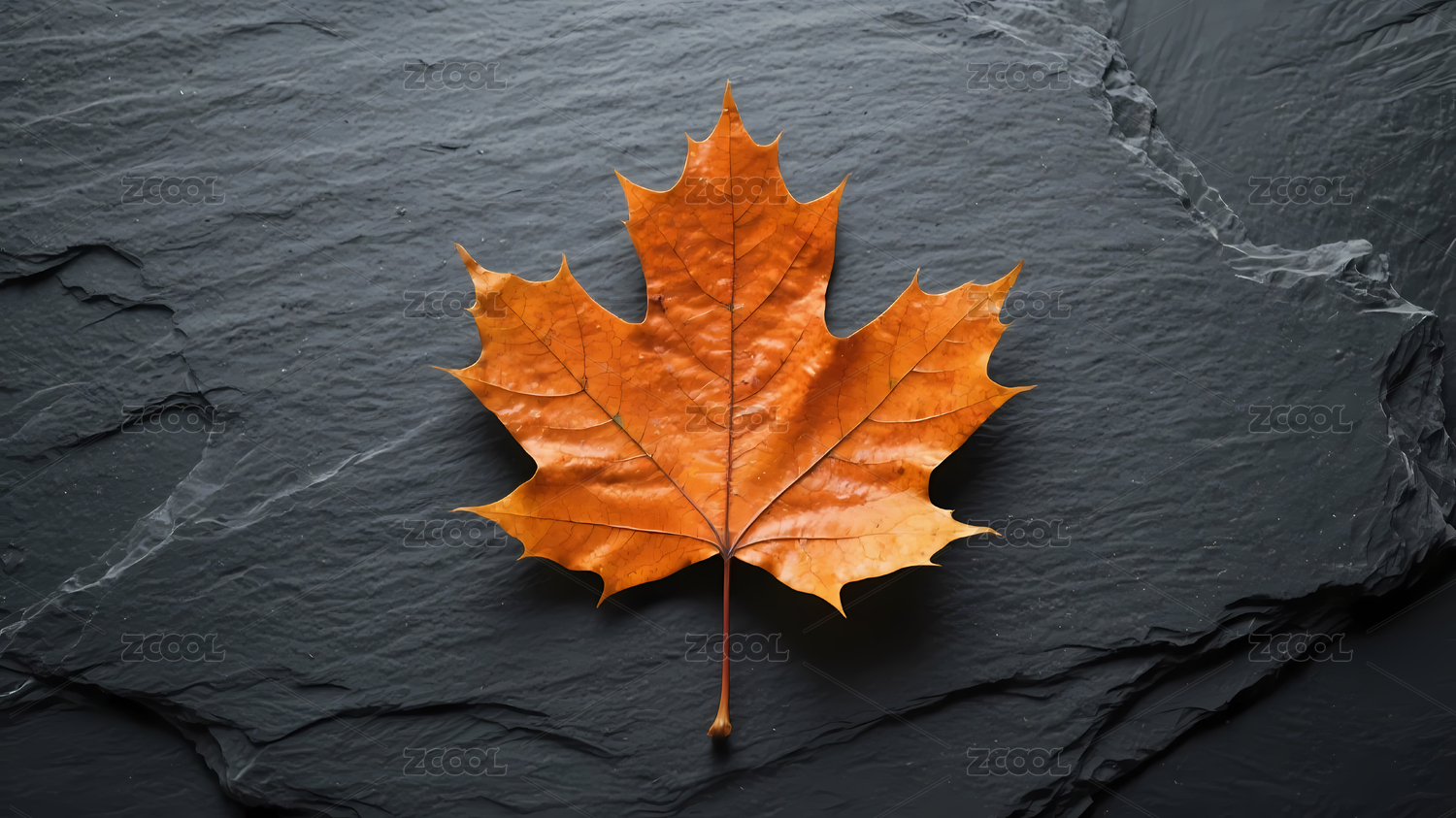 石板背景橙黄枫叶