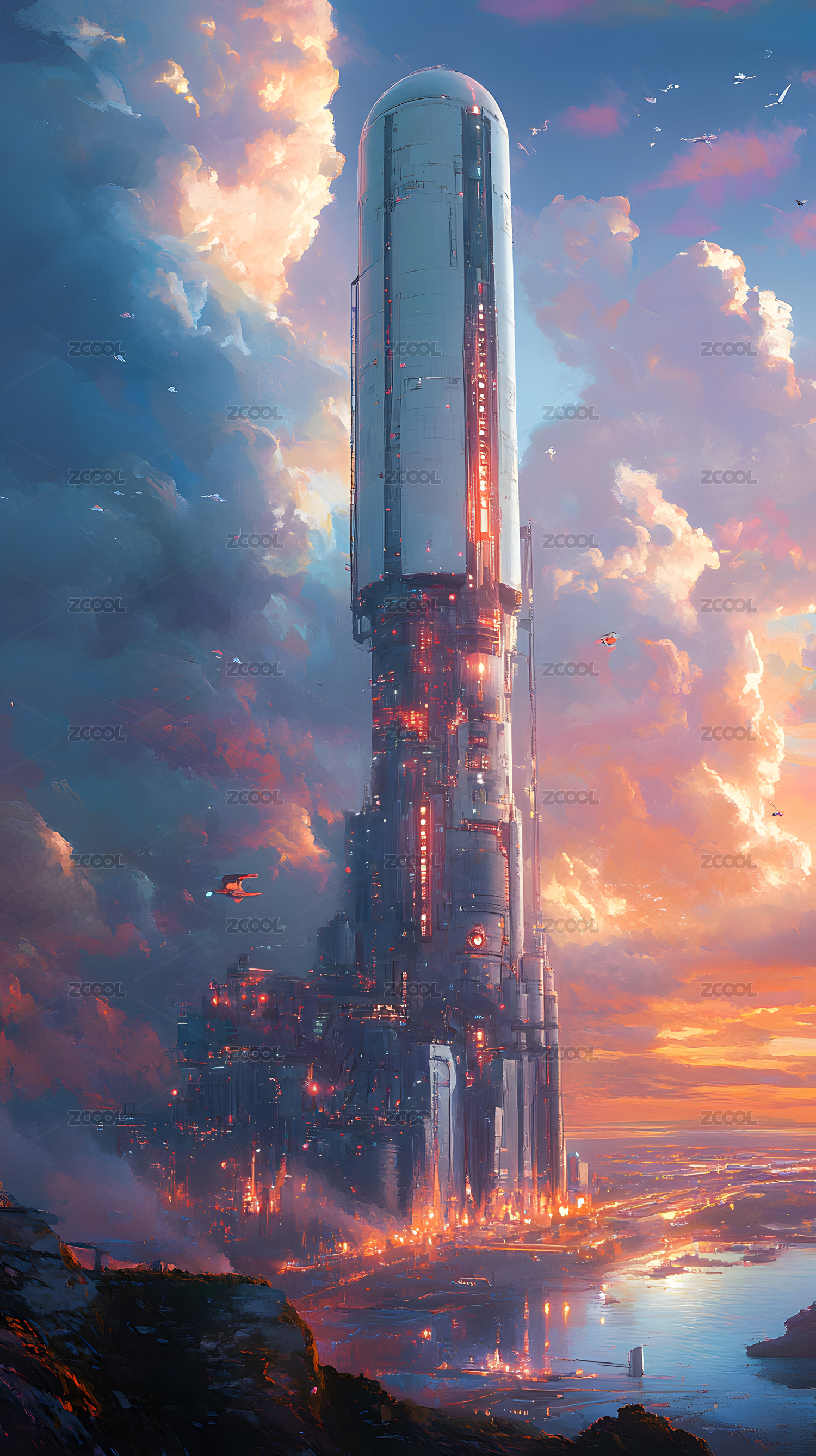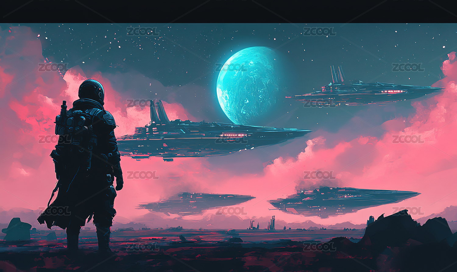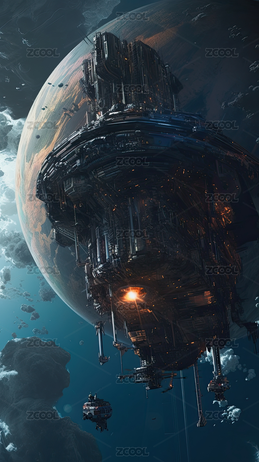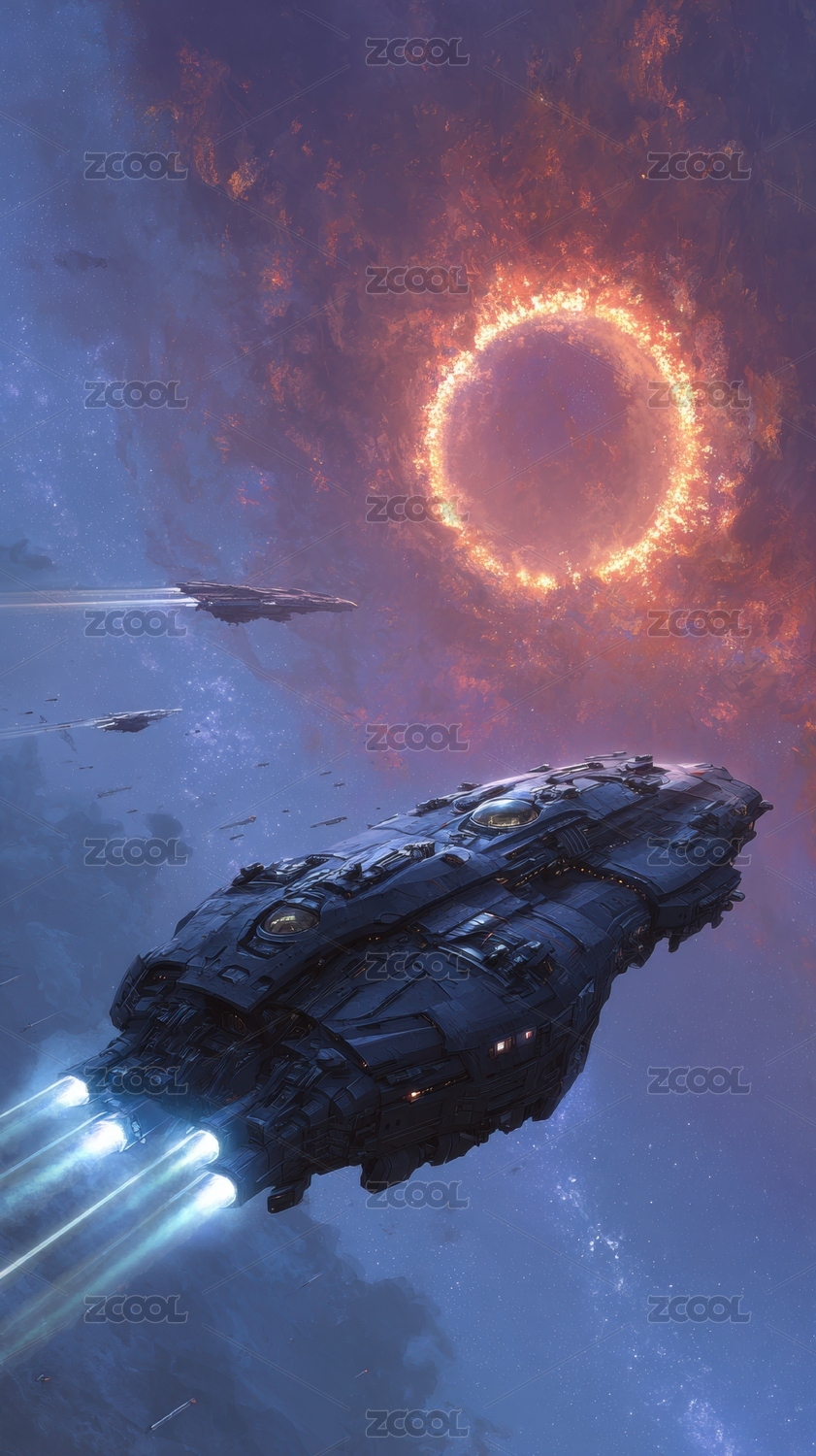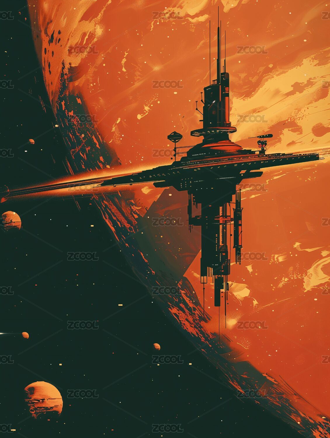 科技科幻未来宇宙太空中的飞船3D立体插画