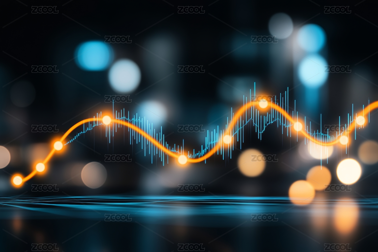 城市夜景中的数据波形图主题