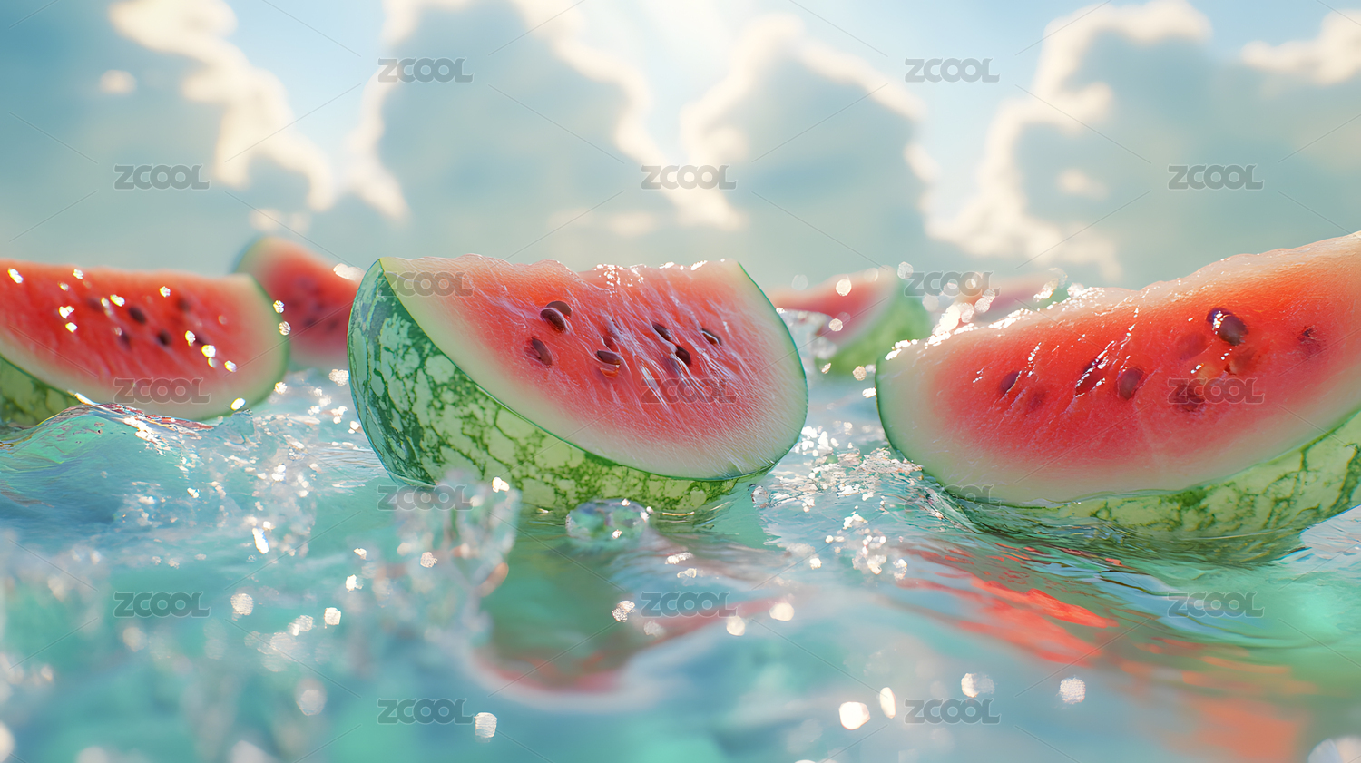 清凉夏日西瓜溪流