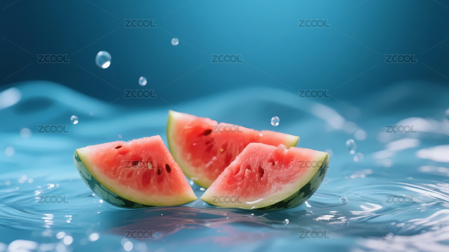 蓝波清新红绿西瓜三片