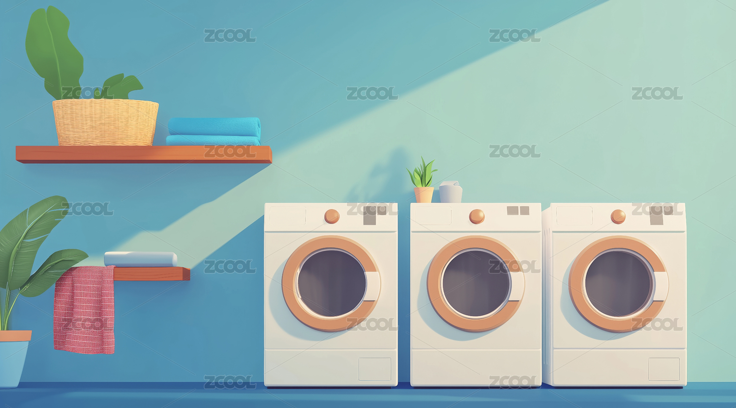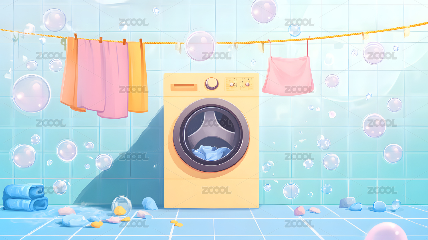 洗衣机,家电,衣服,洗衣,卡通,插画,泡泡