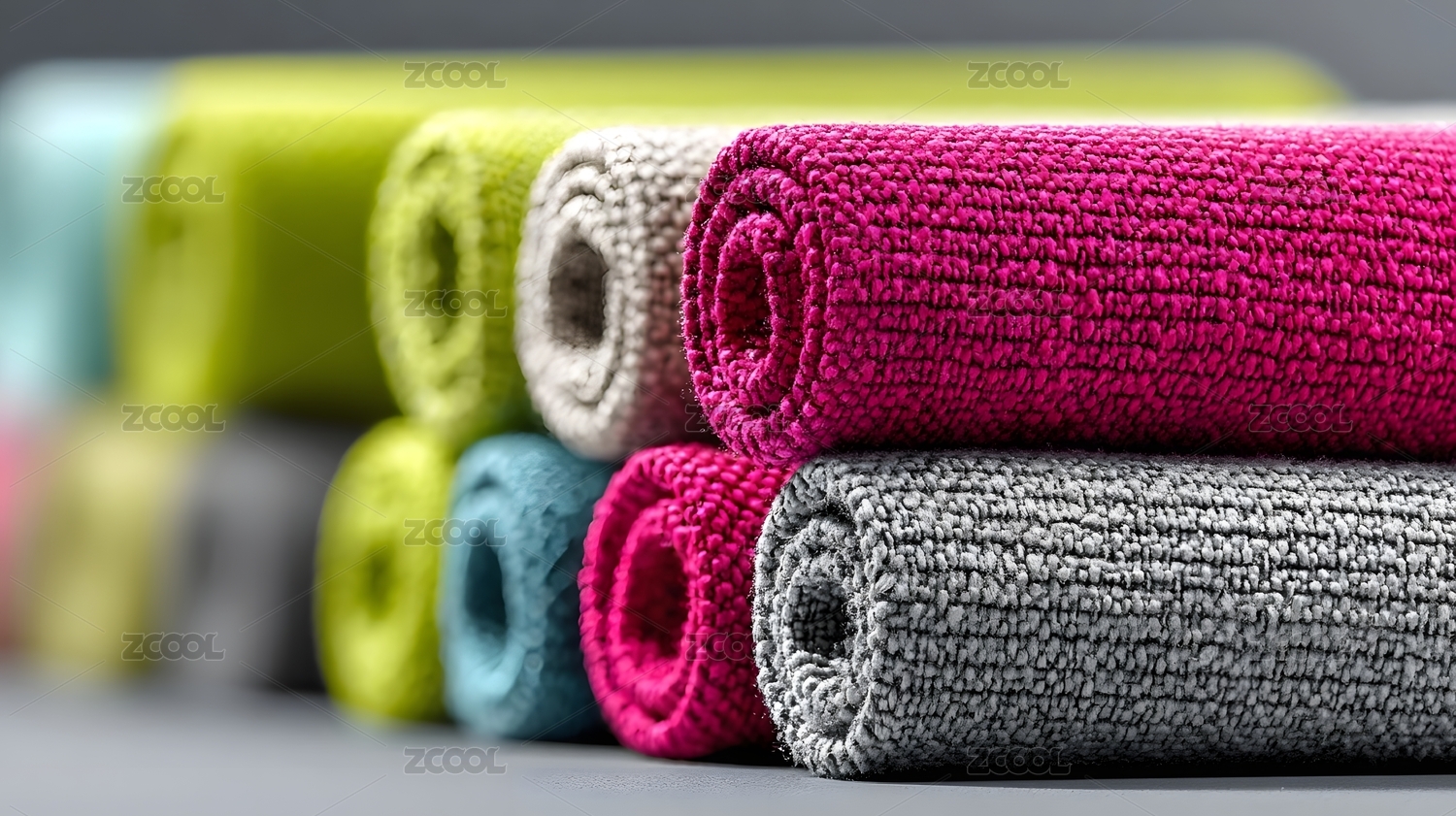 多彩毛巾卷排列展示