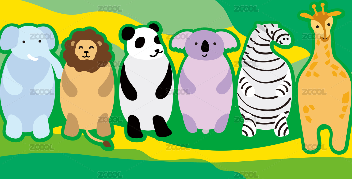长颈鹿,熊猫,老虎,松鼠,熊,树,猪,草丛,刺猬,花