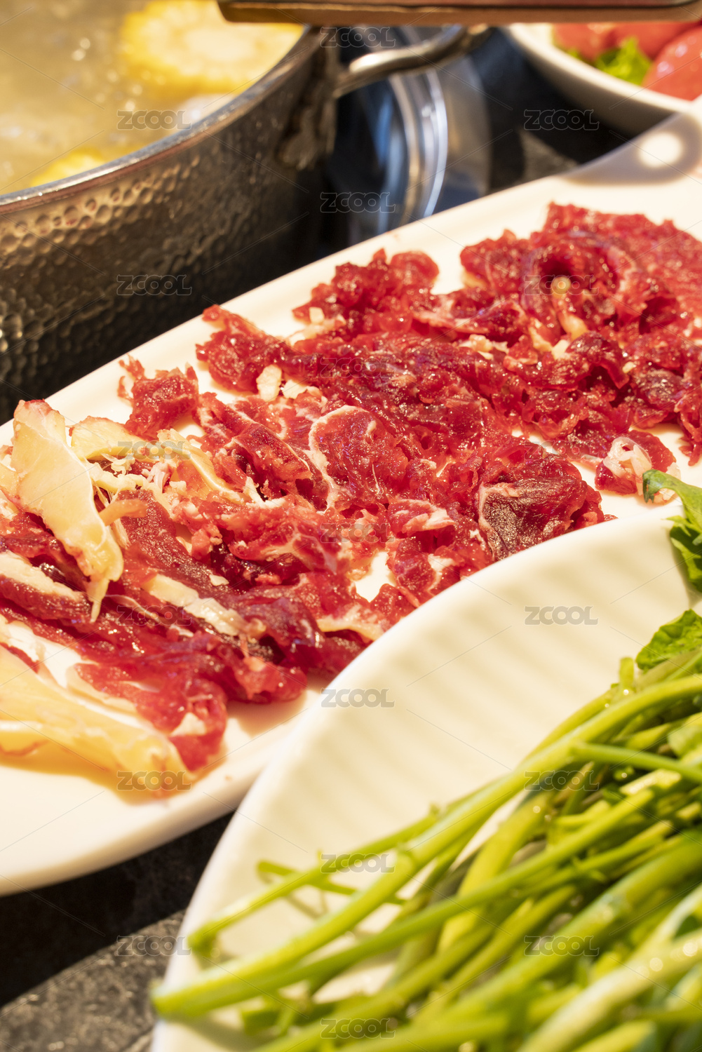 潮汕牛肉火锅食材匙柄切片装盘特写展示