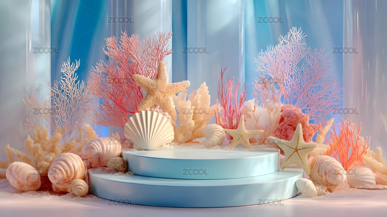 海洋主题清新电商展台3d水晶质感背景