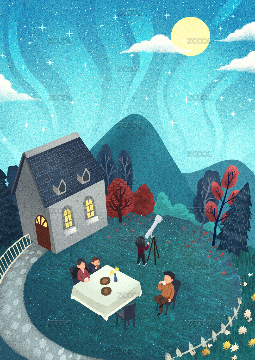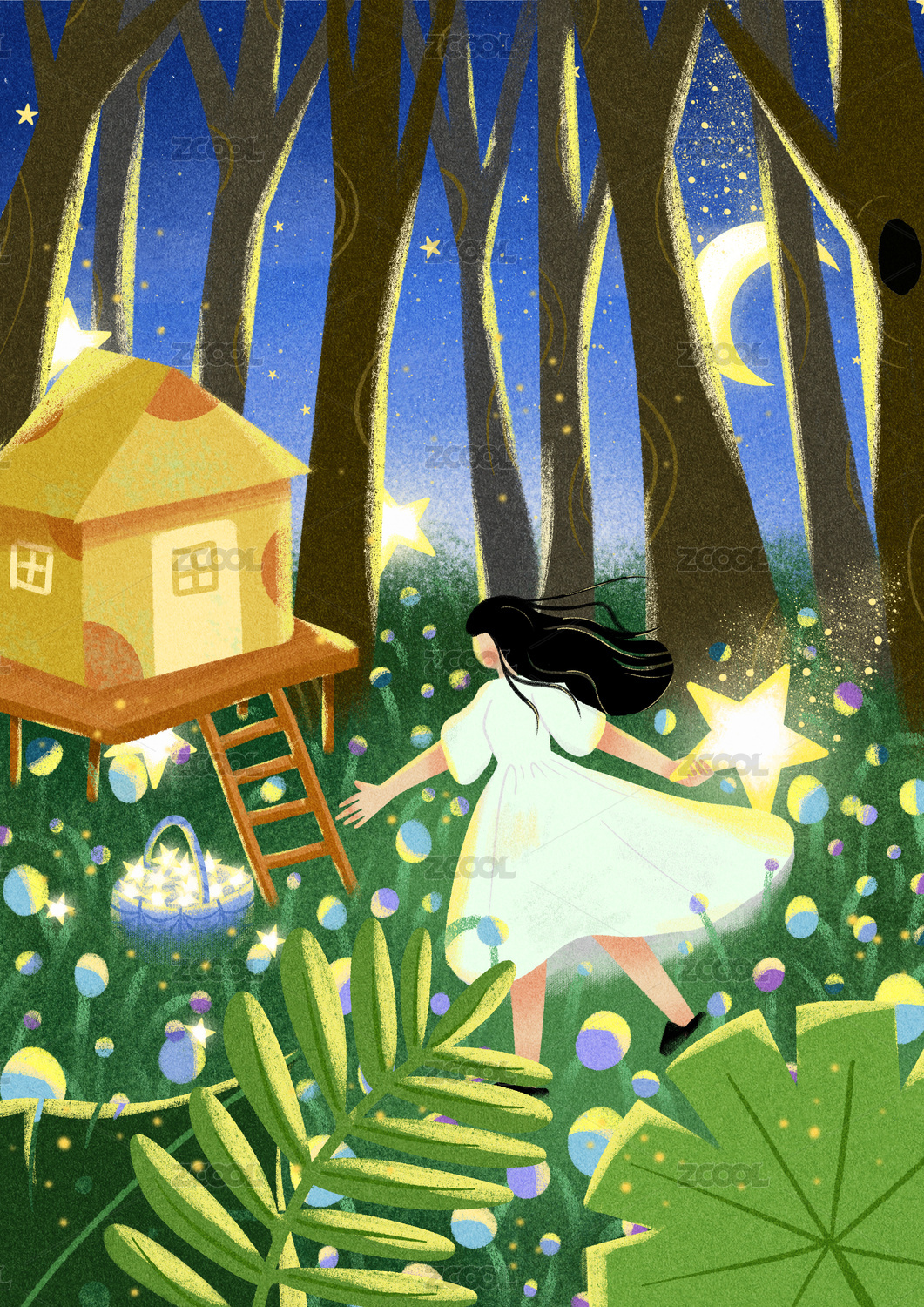 万圣节,节日,森林,动物,鸟,长颈鹿,灌木,树林,小屋,南瓜