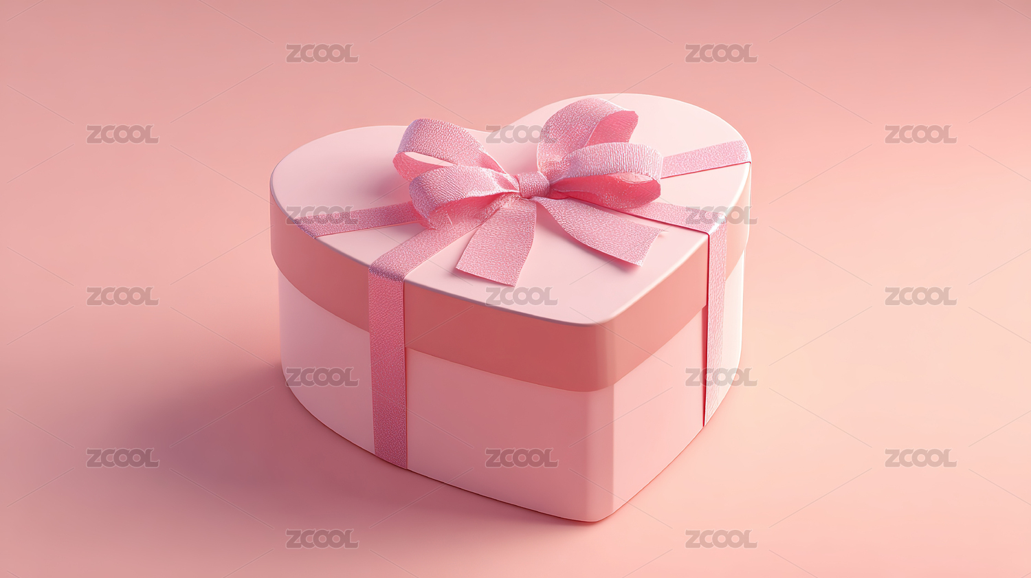 粉红色倾斜心形礼物盒子玫瑰色丝带礼盒
