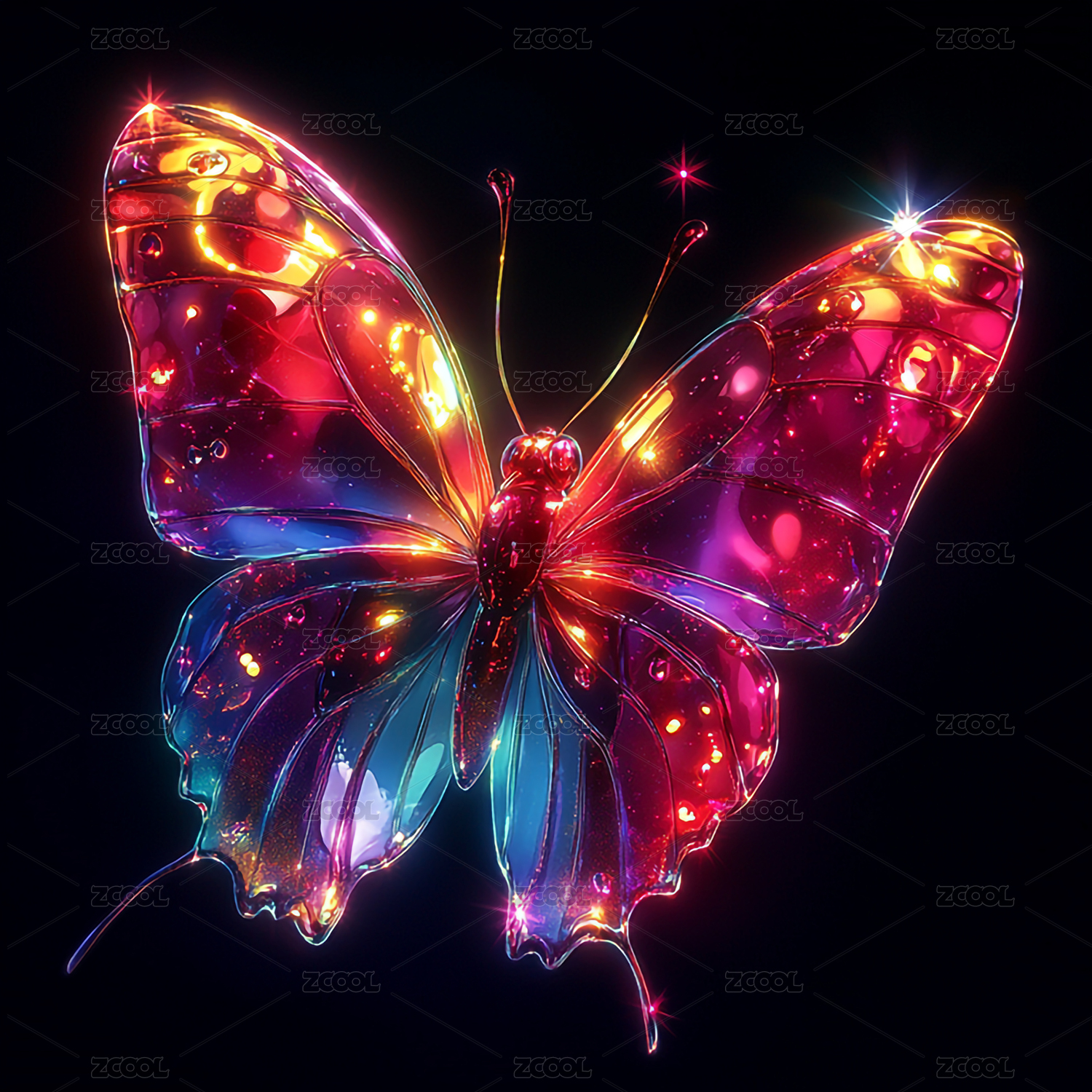 唯美梦幻展翅飞翔的蝴蝶图案印花插画