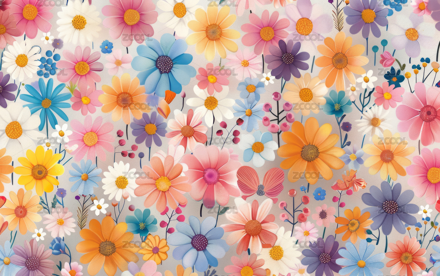 色彩缤纷的手绘花植物草肖像无缝壁纸插画