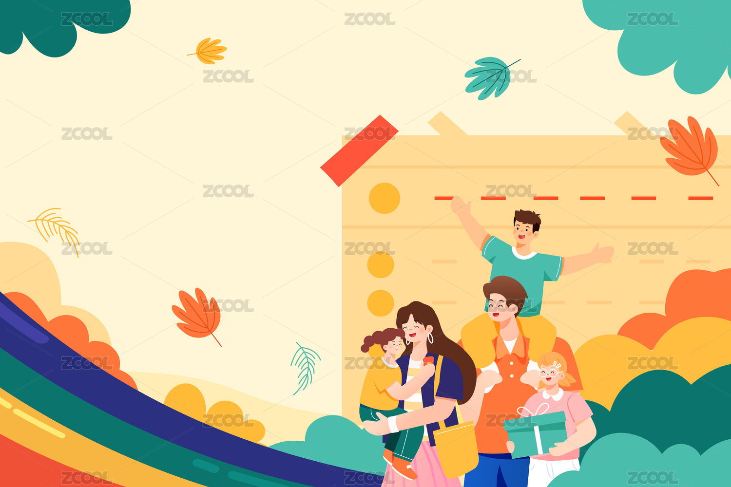 卡通立春出行亲子游踏青中国风背景矢量插画