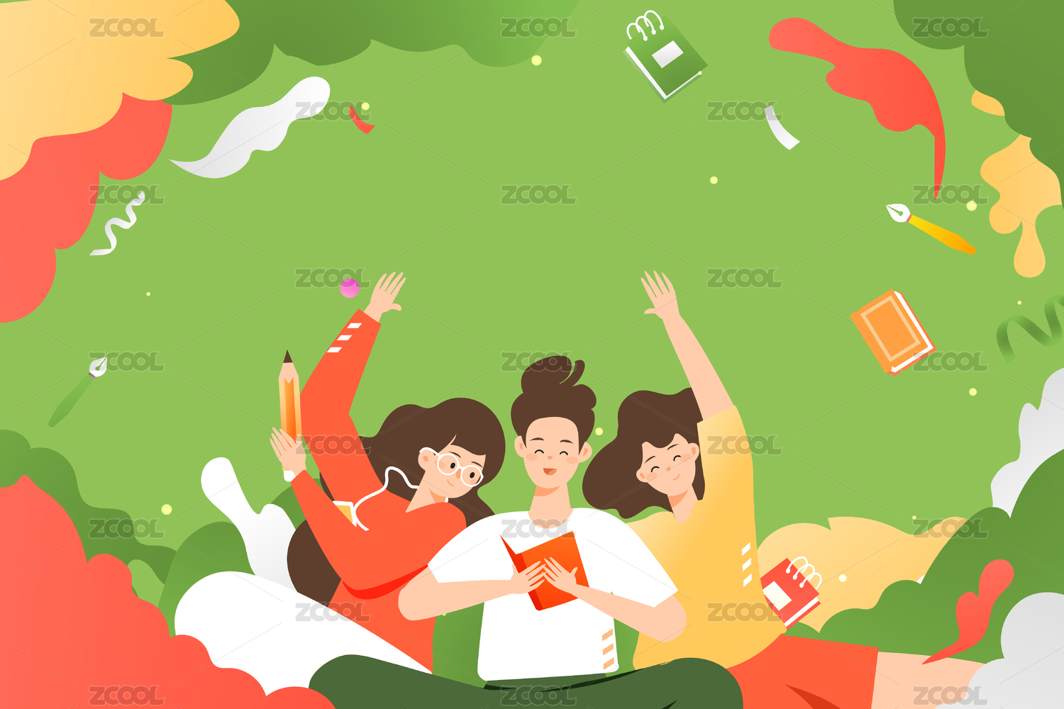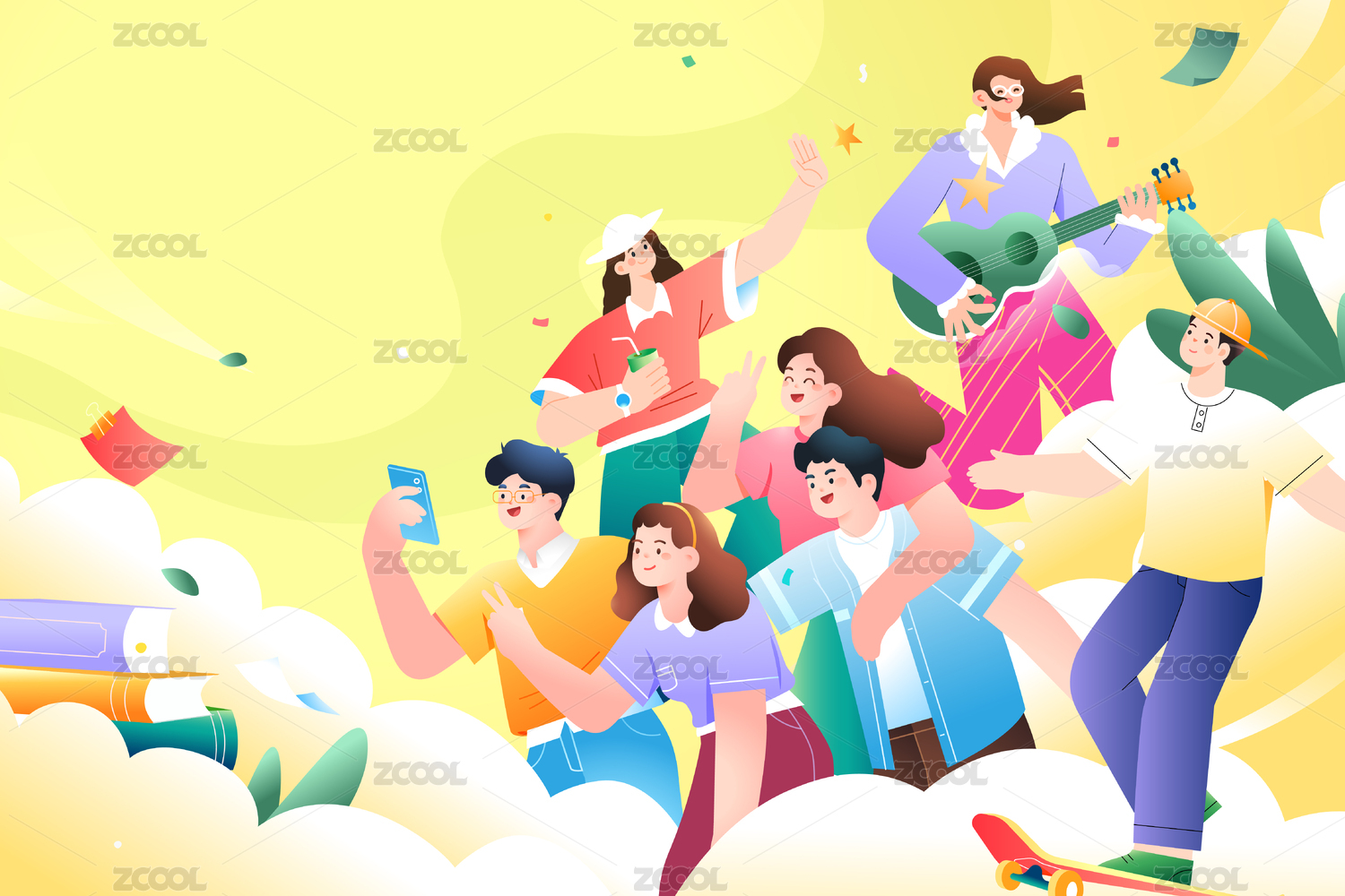 五四青年节青春活泼快乐年轻人跳跃庆祝插画