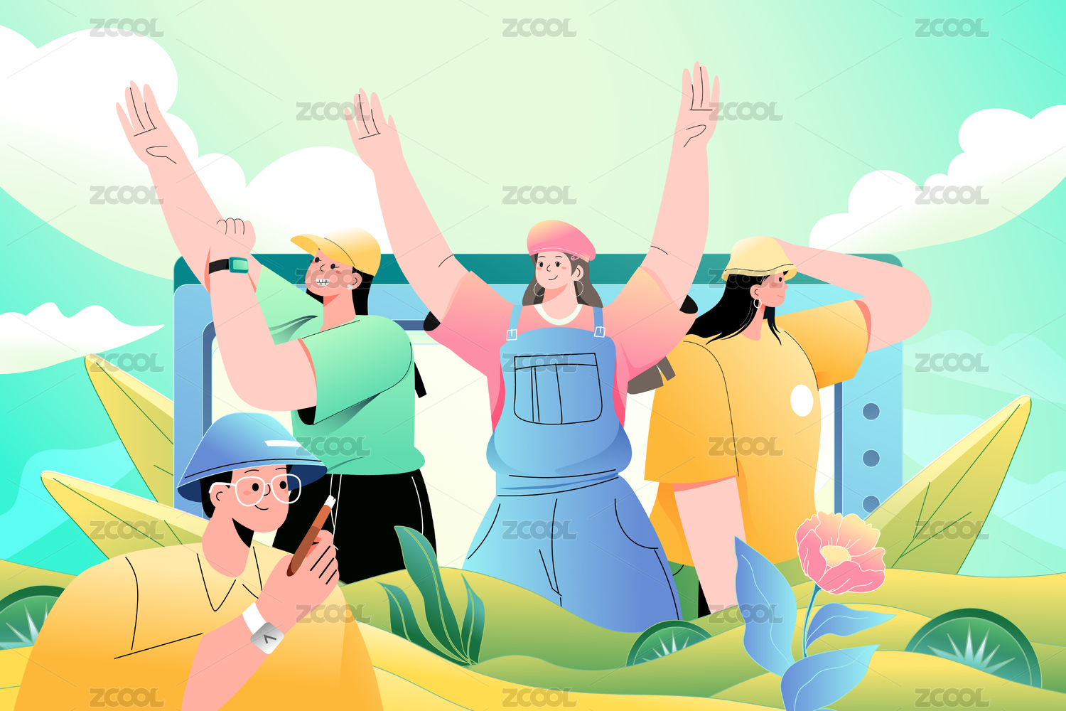 人物毕业旅行高考录取出游夏天旅游矢量插画