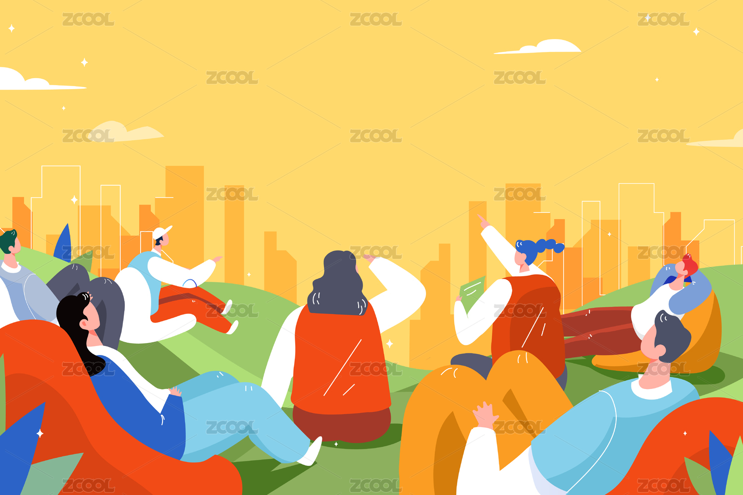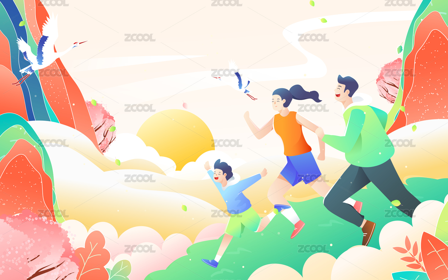 插画,秋天,秋分,立秋,扁平风,快乐,热闹,奔跑,青年人,阳光