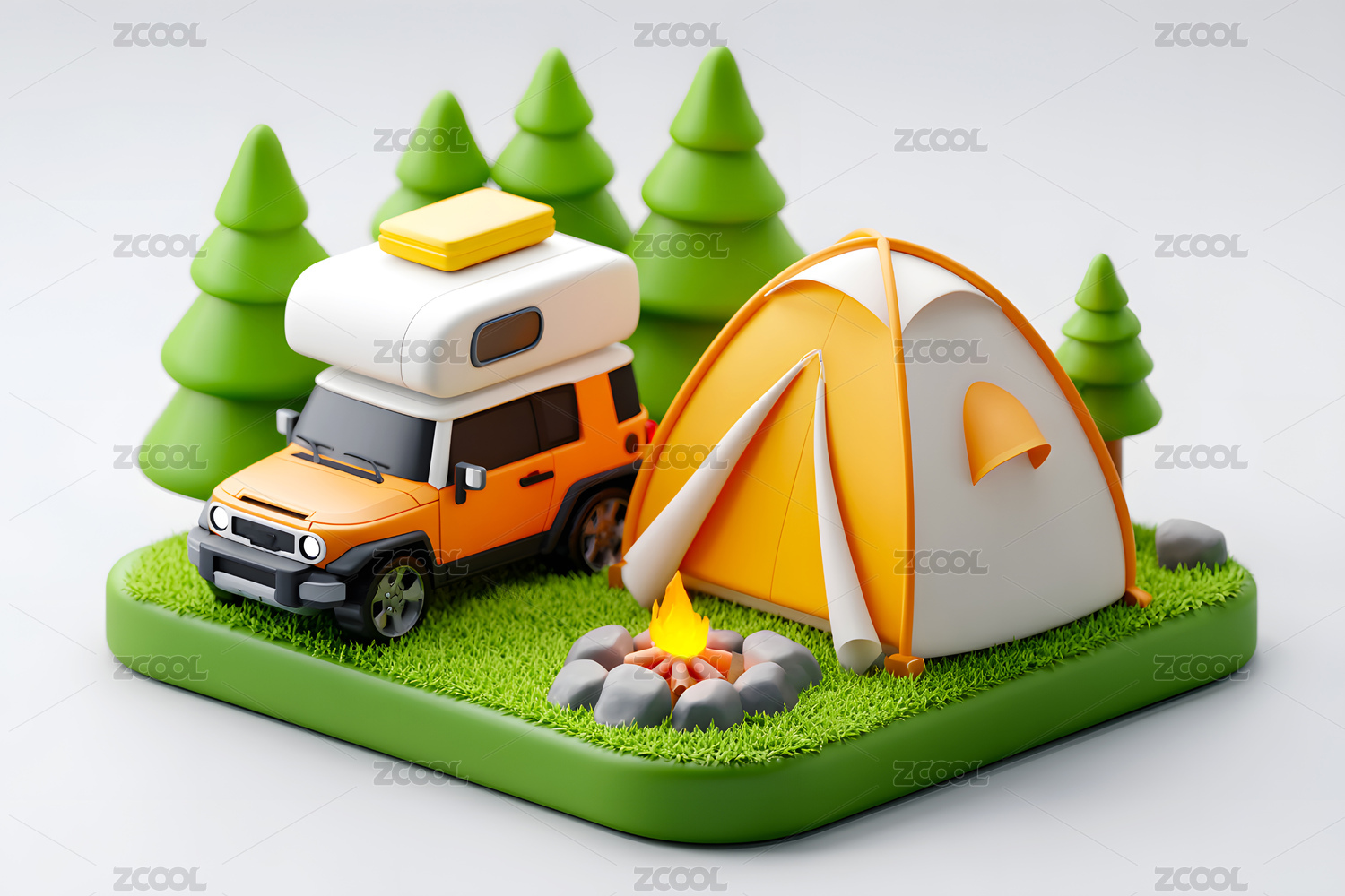 3D卡通露营汽车创意场景