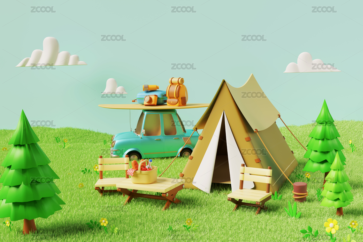 3d卡通露营场景