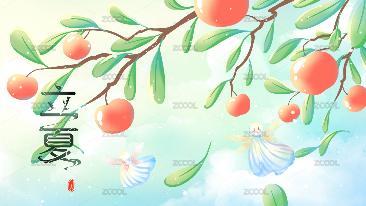 立夏树枝上结满红色的果子小精灵在下面飞舞
