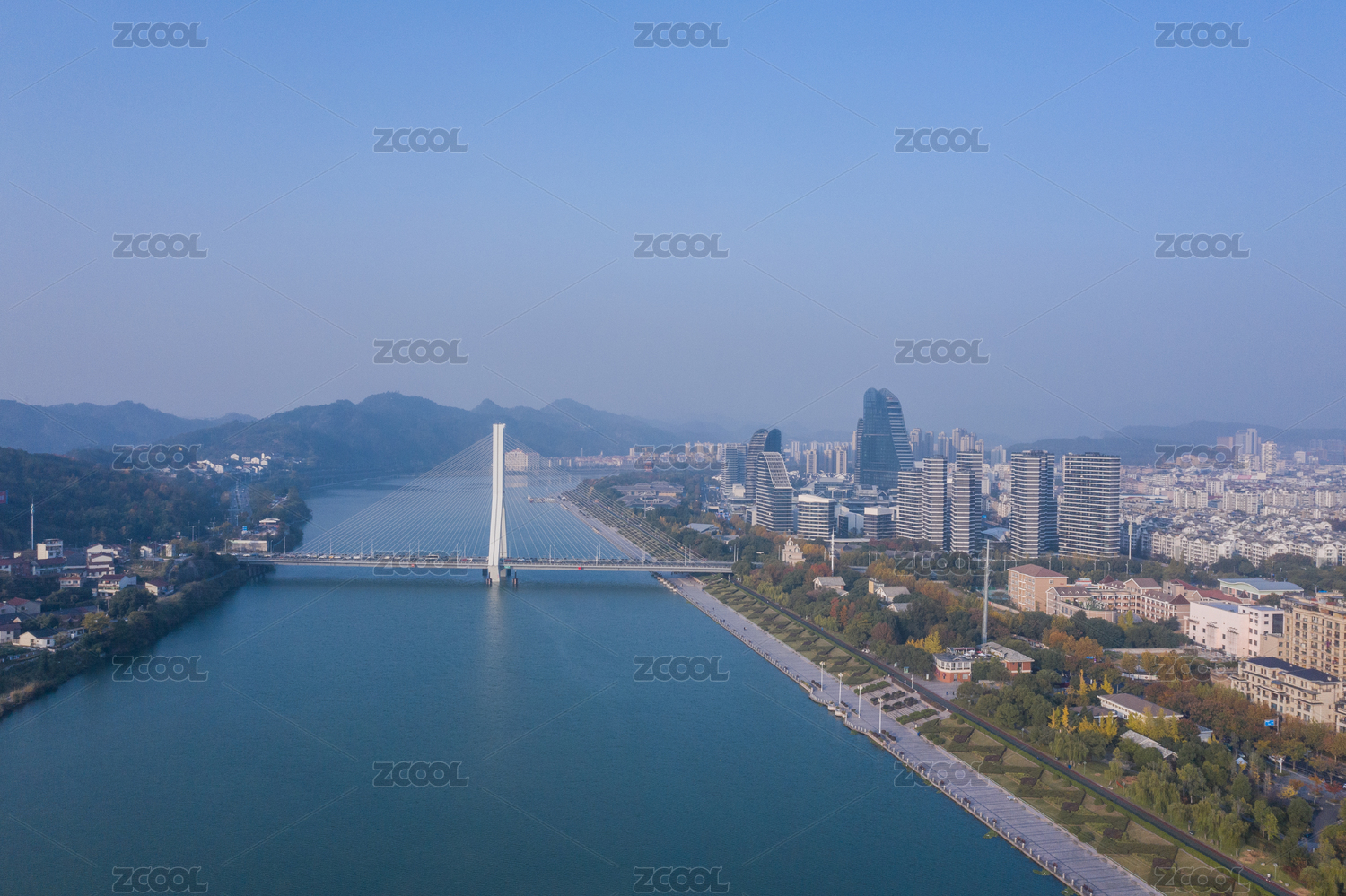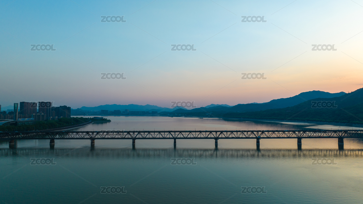 浙江省杭州富阳富春大桥富春江晨曦航拍