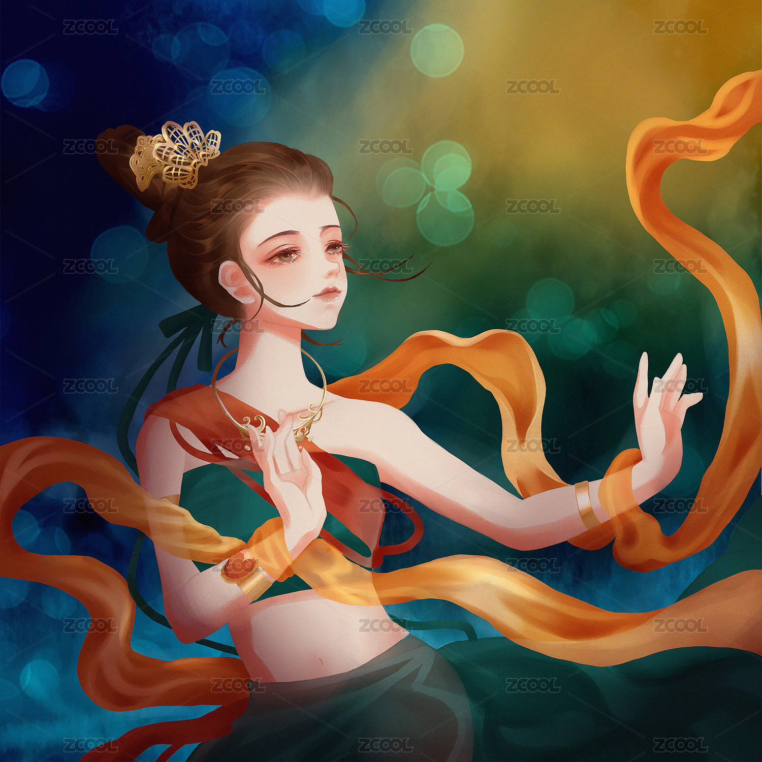 敦煌飞天嫦娥奔月唯美古风手绘插画