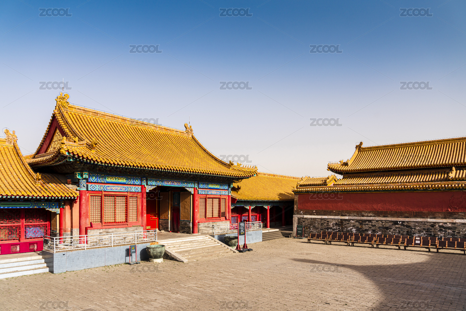 蓝天下的中国北京故宫博物馆的古宫殿建筑