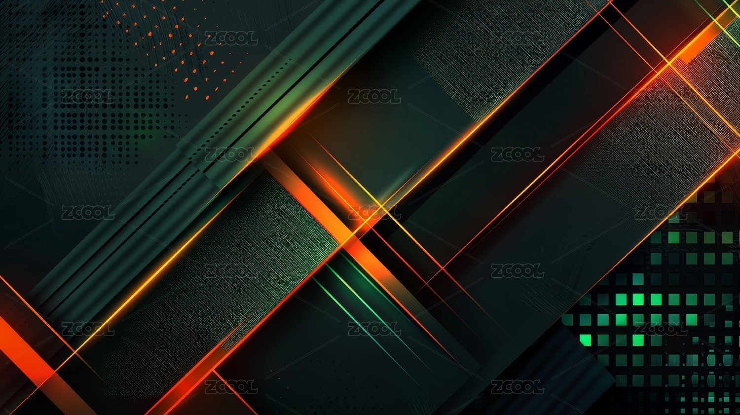 橙绿斜线科技抽象背景