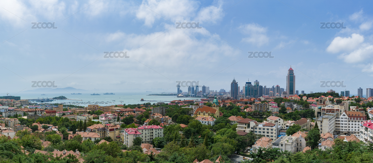 青岛,俯视,高视角,航拍视角,日落,建筑,老城区,老城,天际线,摩天大楼