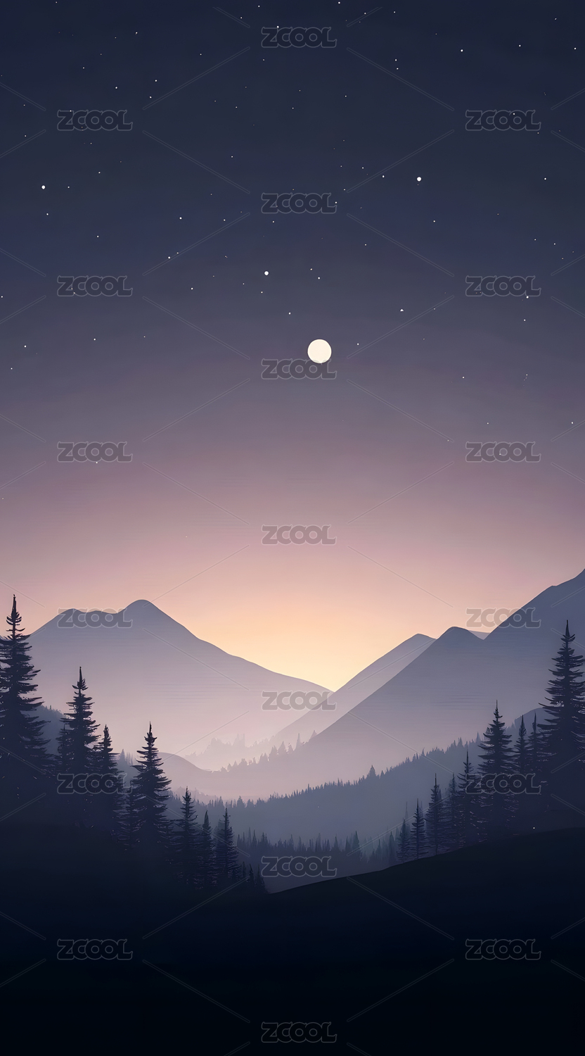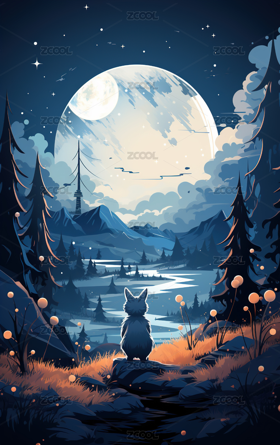 梦幻童话自然风景户外旅行房屋放松场景插画