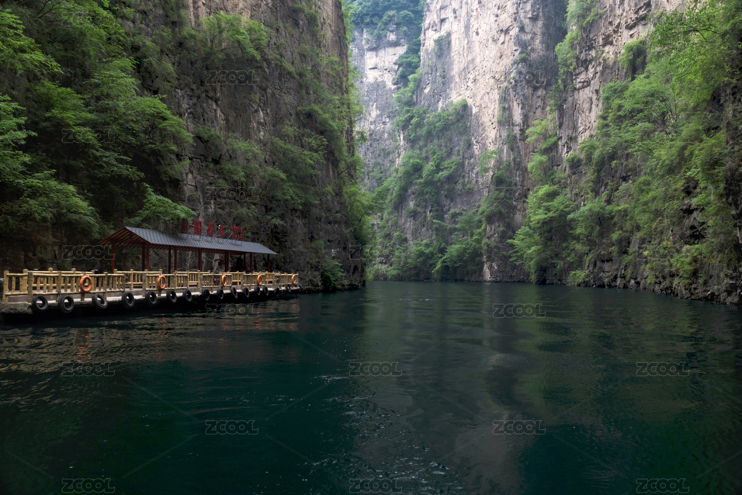 贵州荔波大七孔 恐怖峡峡谷水春河上的游船码头