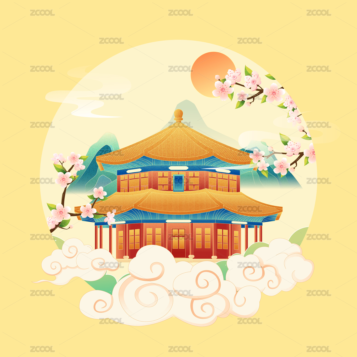 扬州,文昌阁,插画,扬州文昌阁,旅行,矢量,琵琶,琼花,夕阳,江南风光