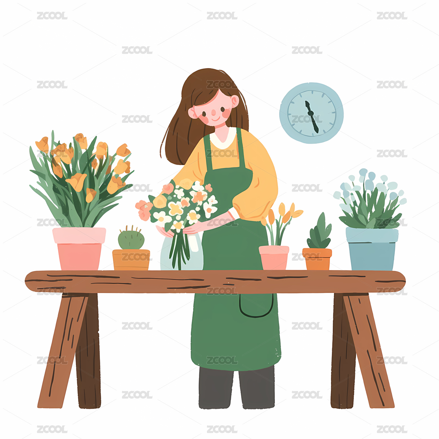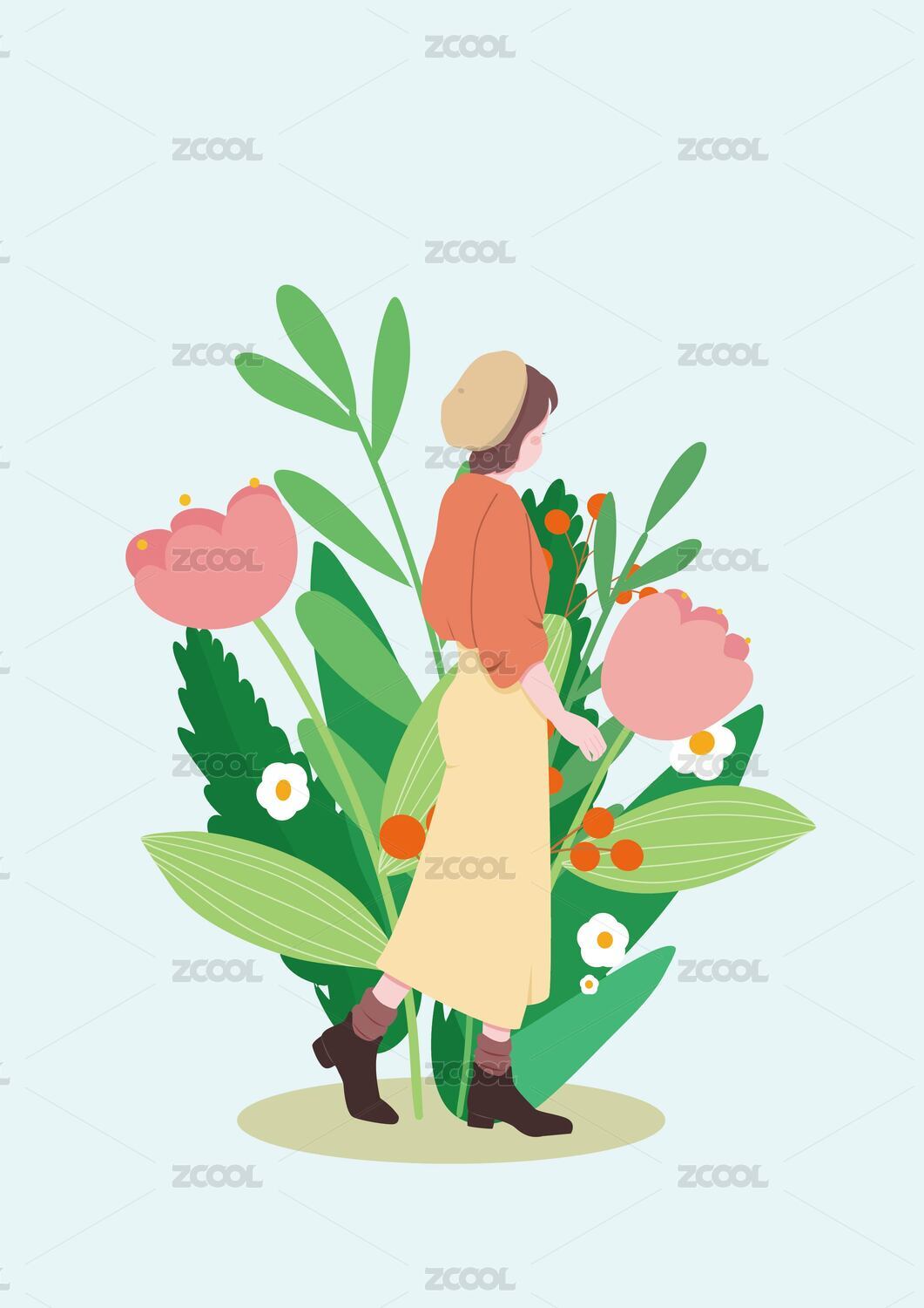 插画女孩与花朵