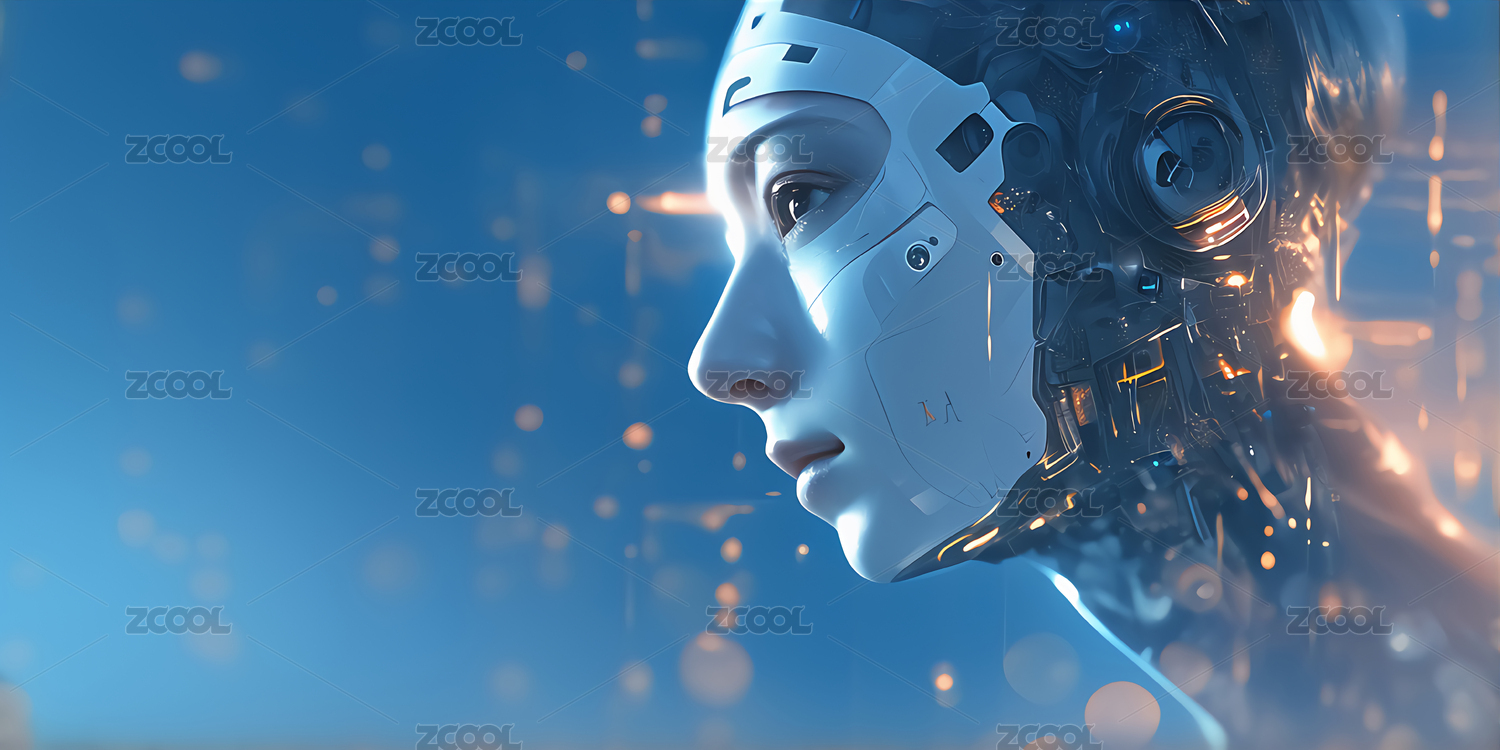 蓝色发光粒子生成人脸抽象虚拟人工智能插画